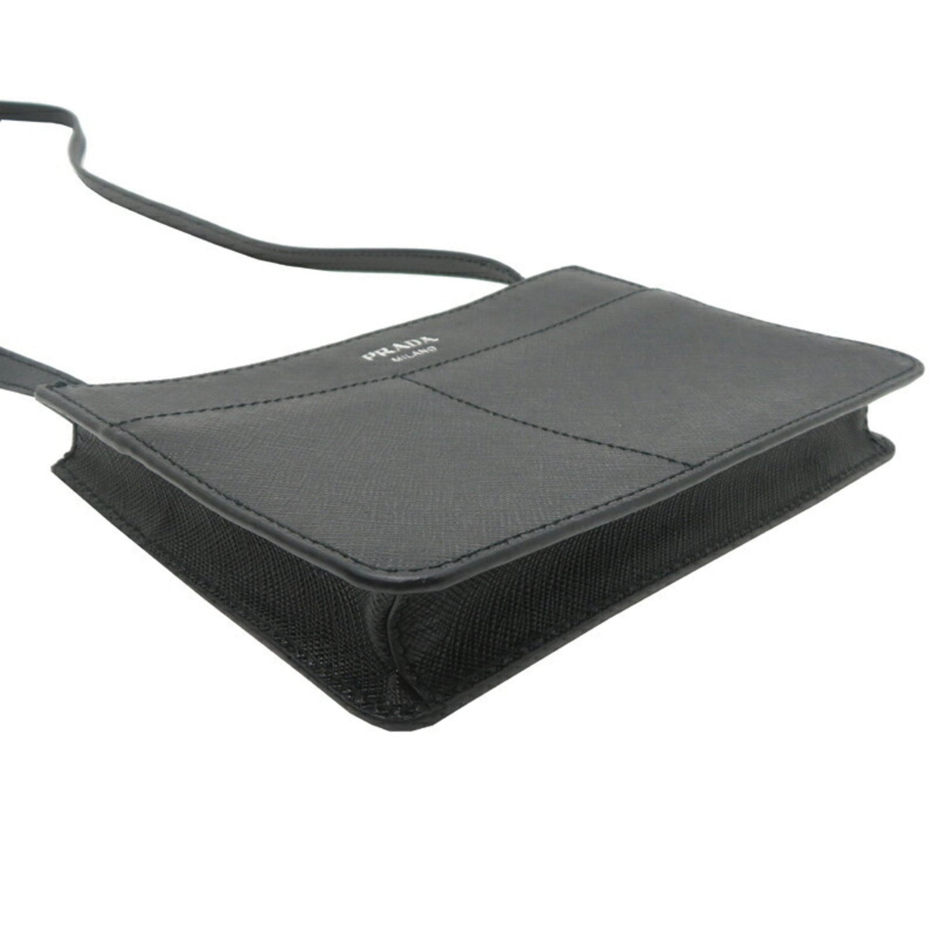 Prada Saffiano Mini Men\'s Shoulder Bag Leather Black