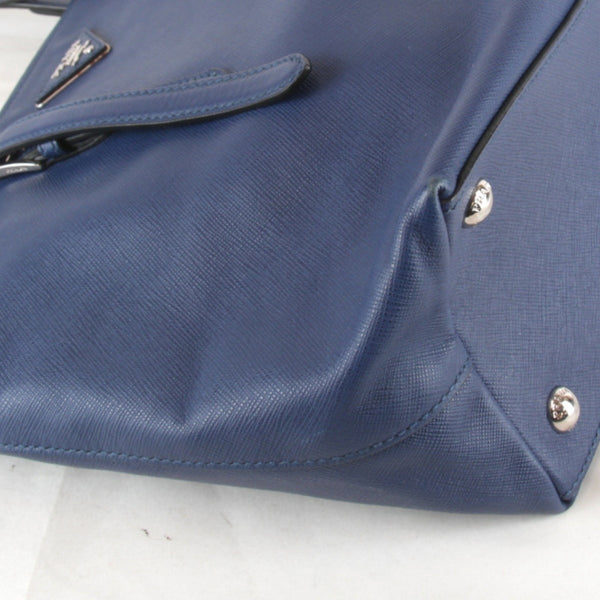 PRADA Saffiano Triangle Shoulder Tote Bag in Navy Leather for Women