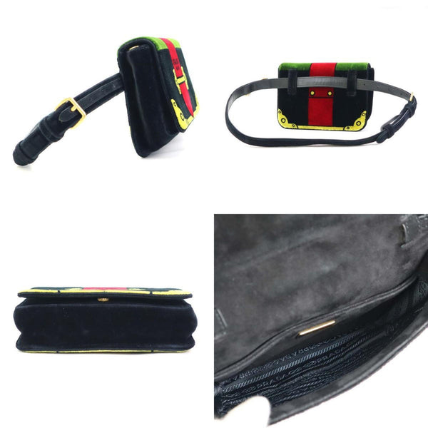 PRADA shoulder bag belt velvet black multicolor gold women\'s e60571a