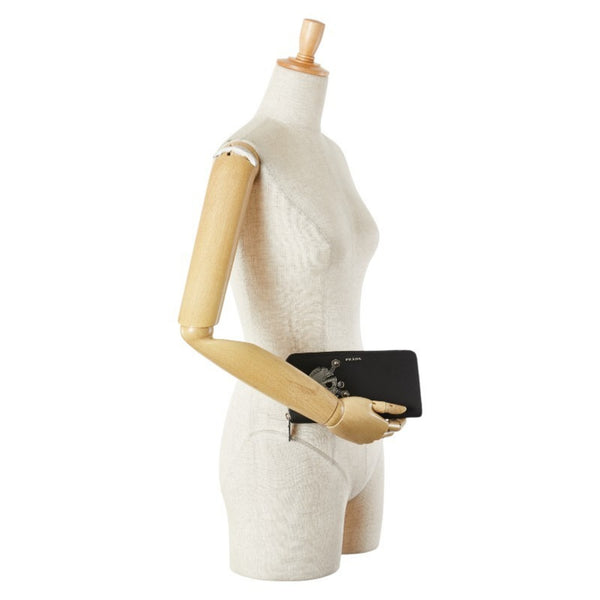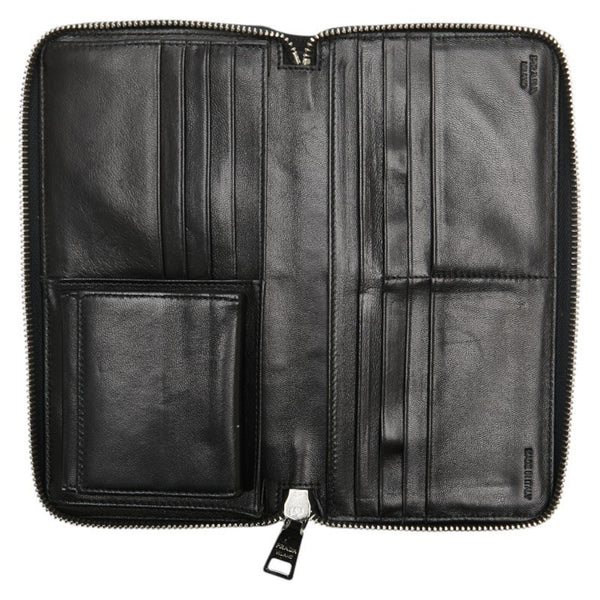 Prada skull long wallet with round zipper, 2M1264, black, silver, nylon, and leather. Men\'s.