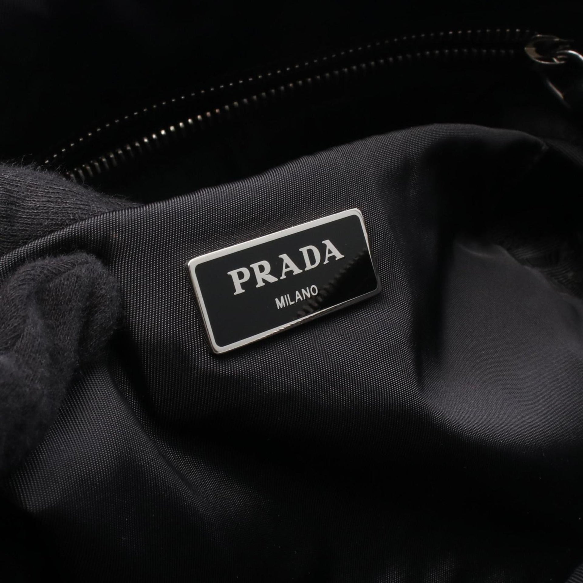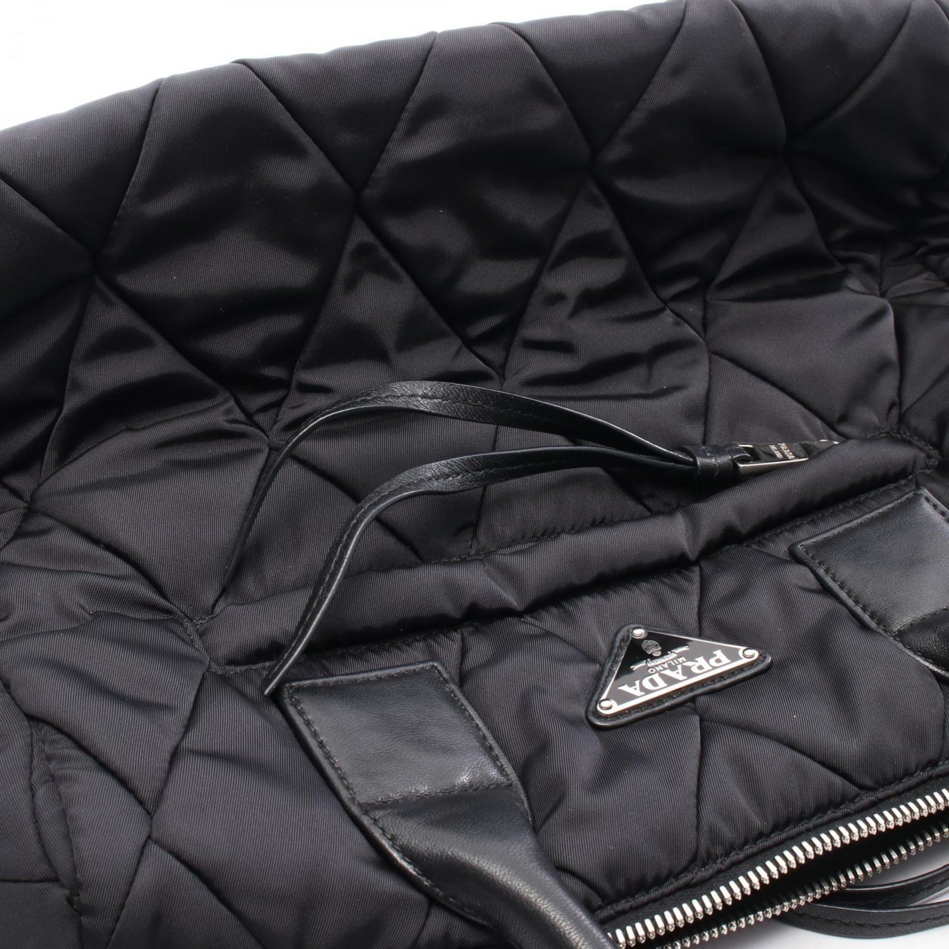 Prada Tessuto Bomber handbag in nylon and leather, black, 1BB024