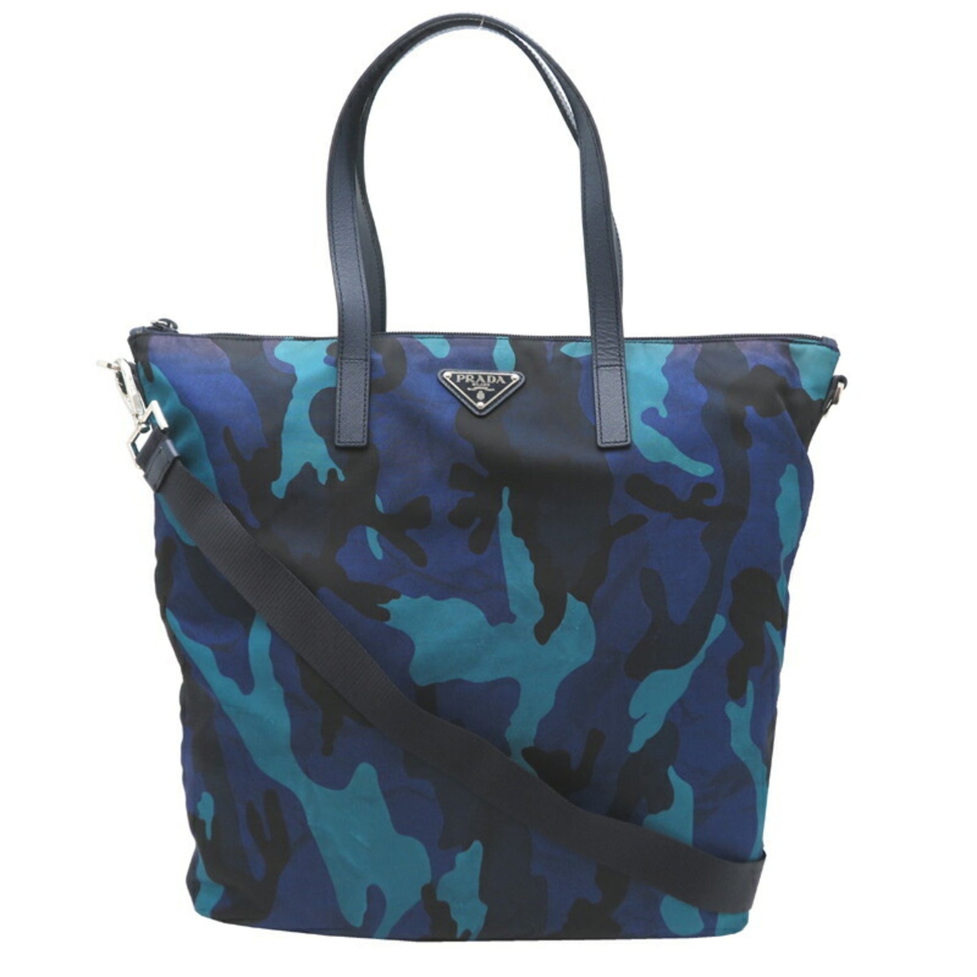Prada Tessuto Camouflage Tote Bag for Men and Women, BR4969, Nylon, Blue
