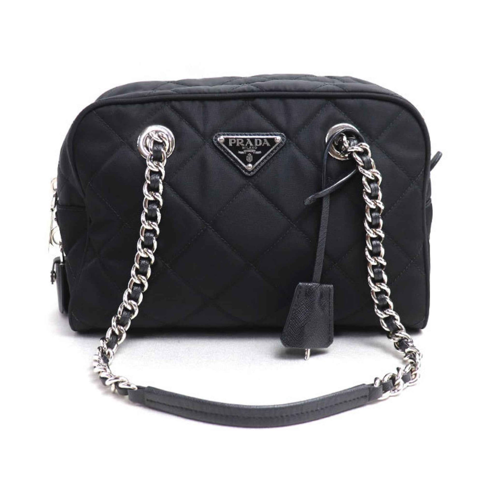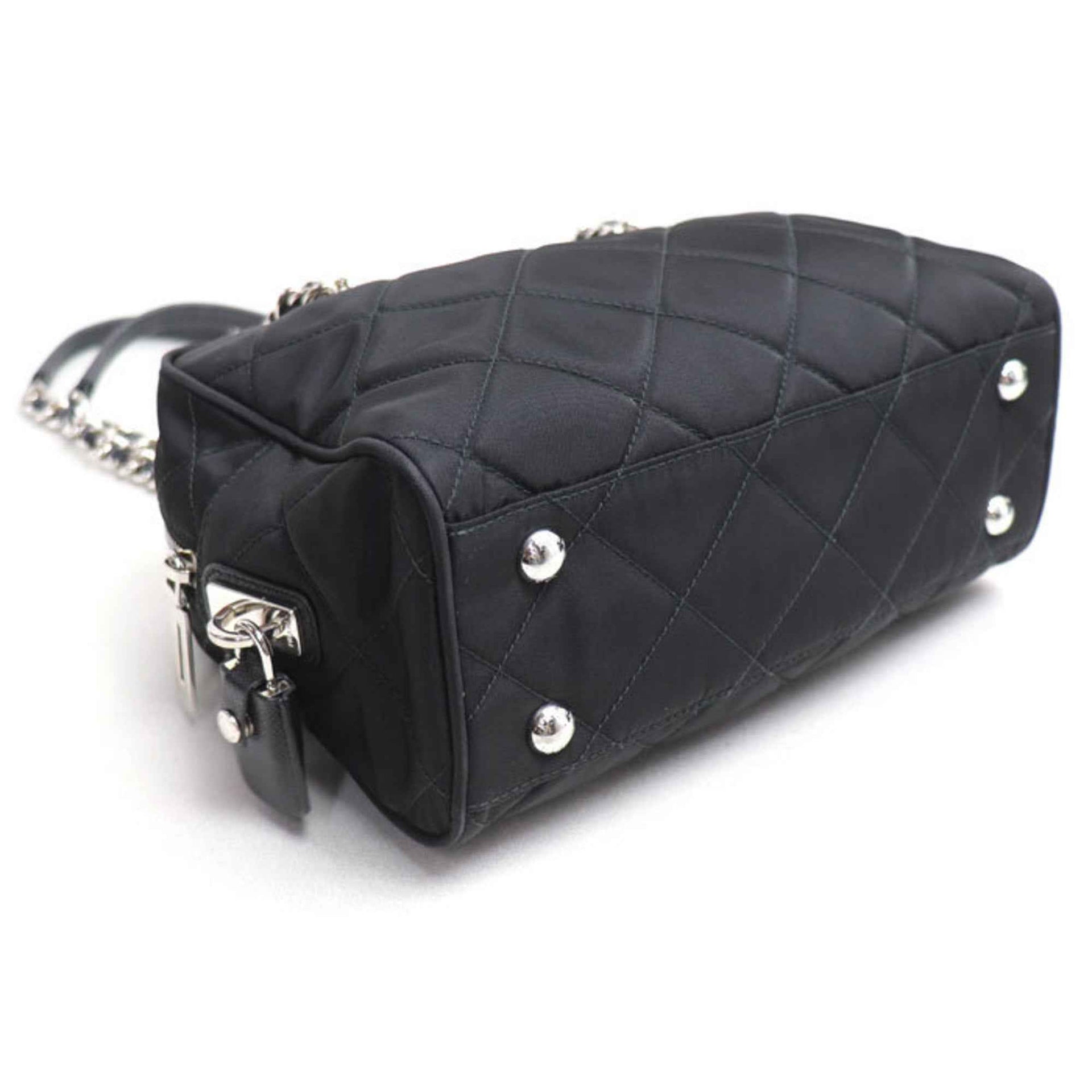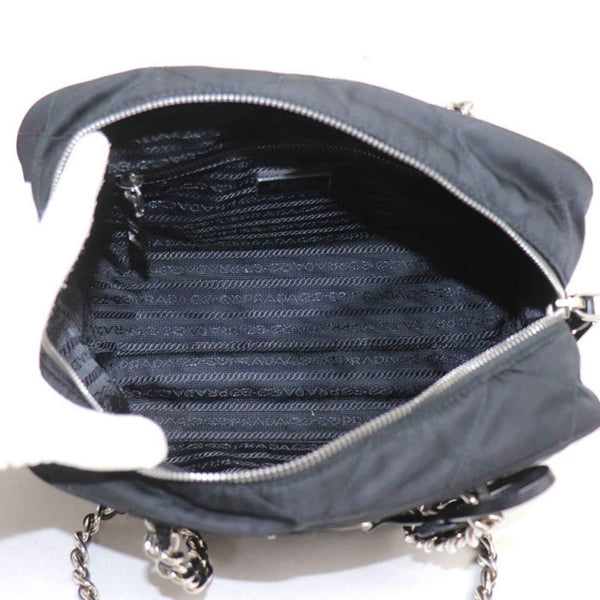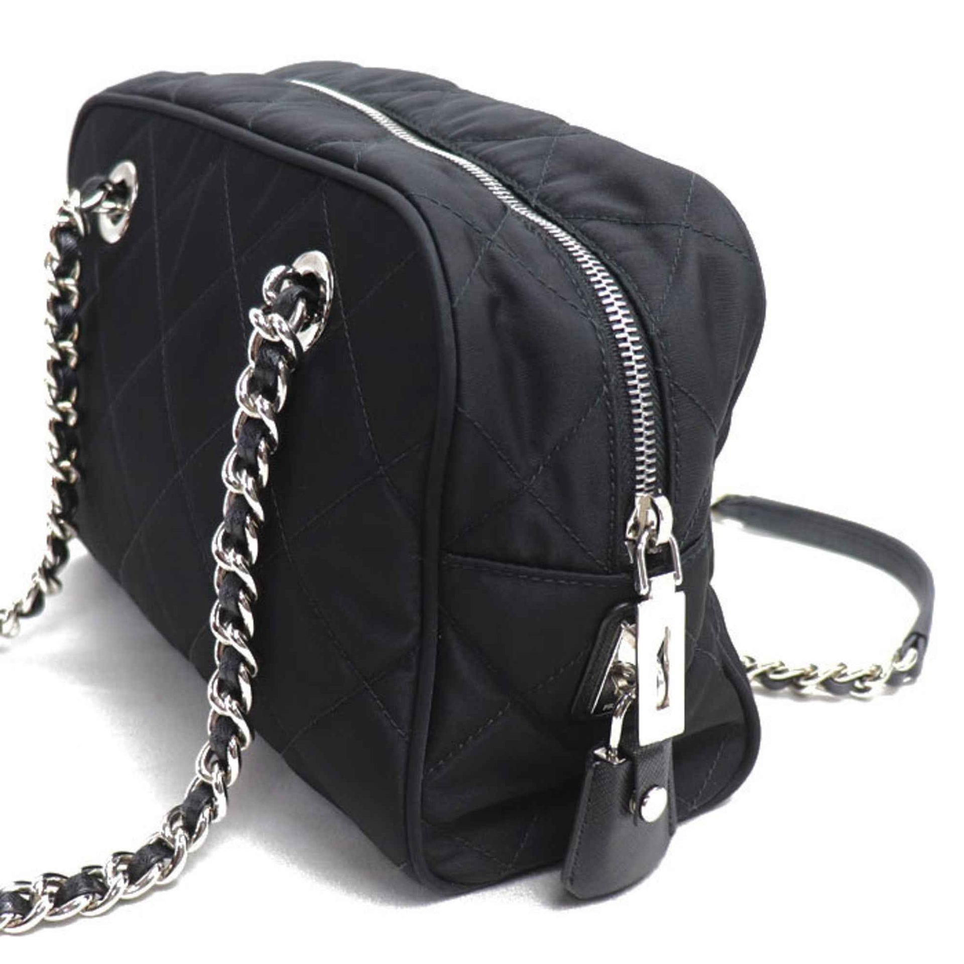 PRADA Tessuto Impuntu Chain Shoulder Bag, Black, 1BB072 2AS3 F0002, Women\'s
