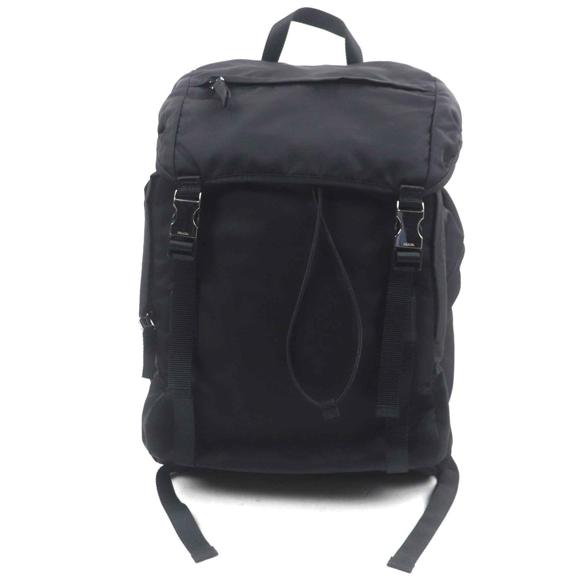 PRADA Tessuto Nylon Backpack with Triangle Logo and Plate, Black, Silver Hardware, Dust Bag Included, Men\'s, 2VZ062