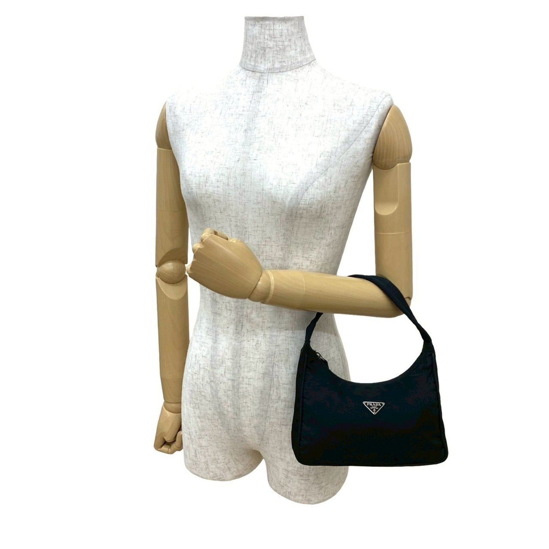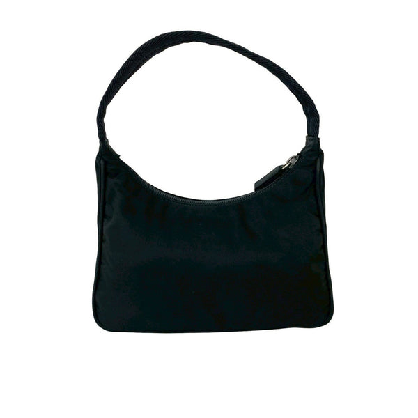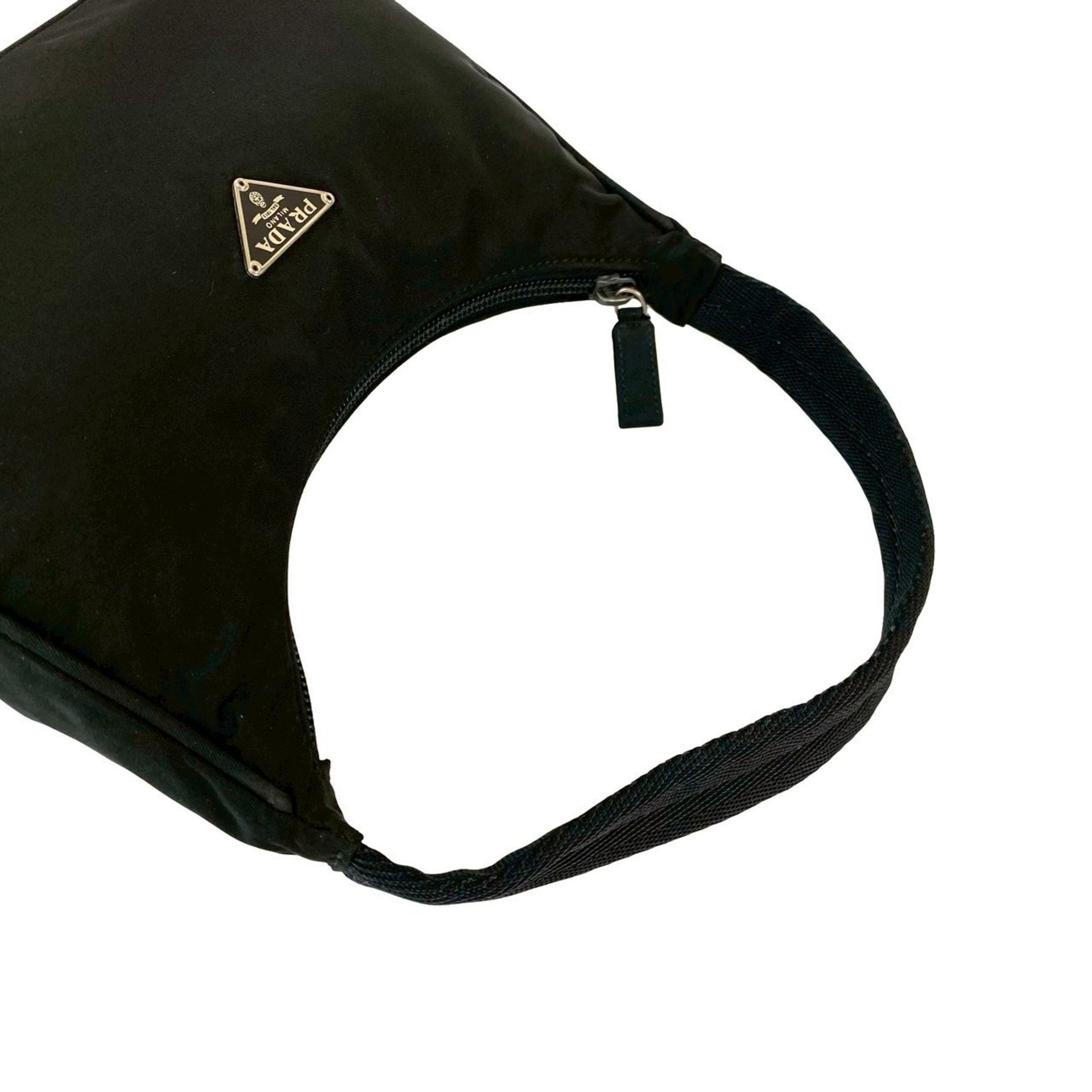 PRADA Tessuto nylon mini handbag with triangle logo and silver hardware, black, 04871