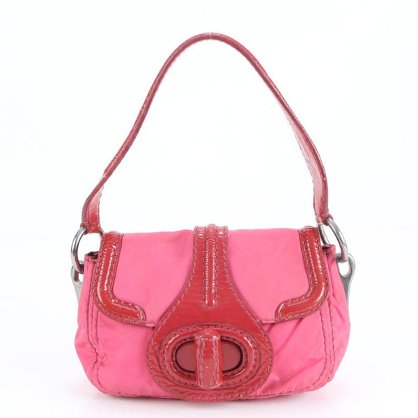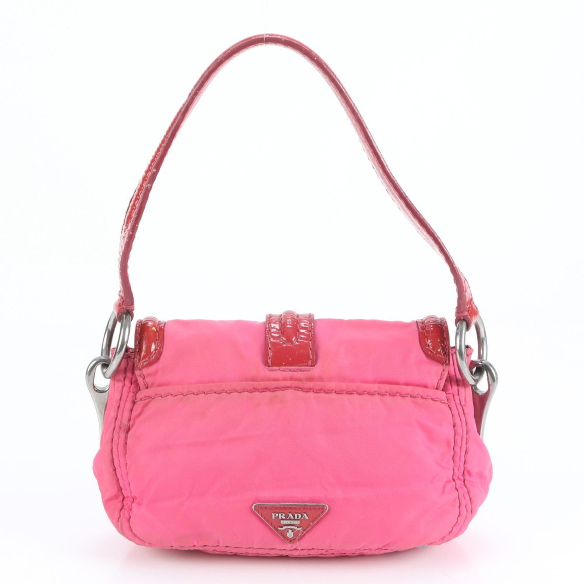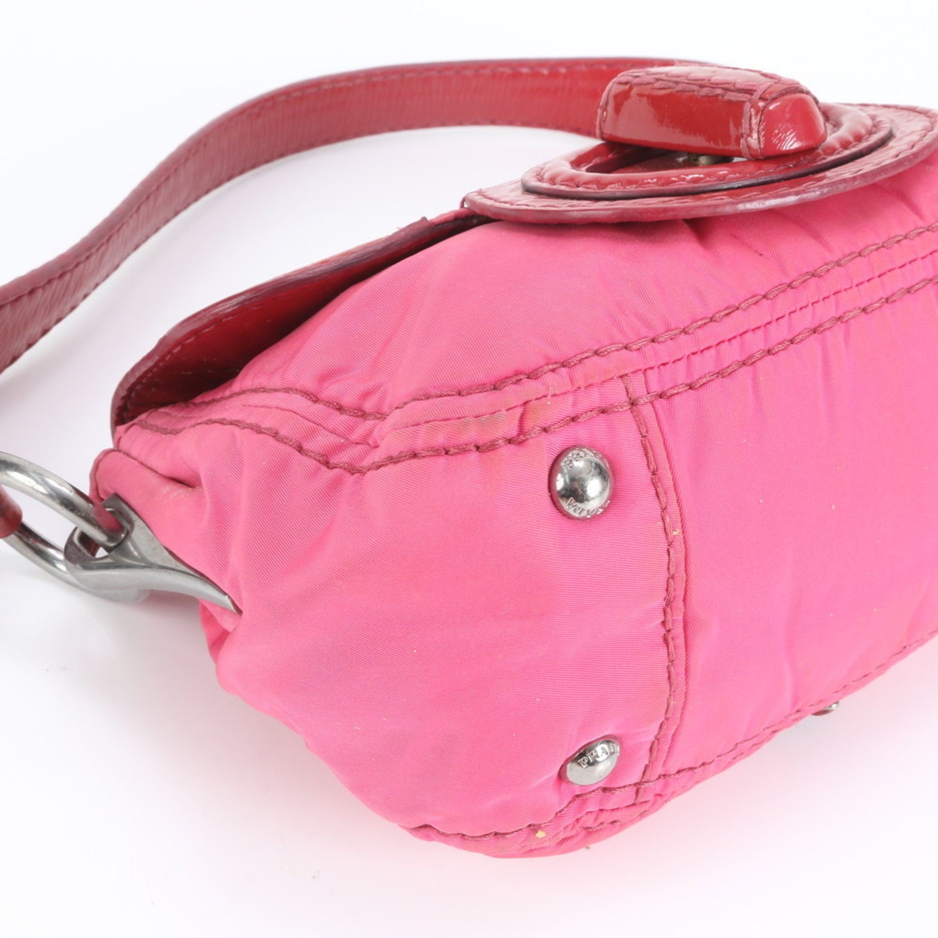 Prada Tessuto Nylon Triangle Logo Patent Leather Shoulder Bag, Pink, Women\'s