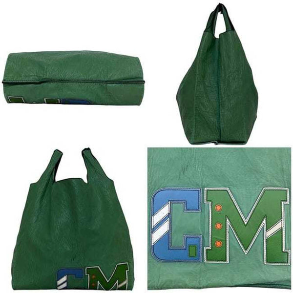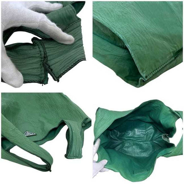 Prada Tote Bag with Initial Patch, ec-24663, Green Leather, Nappa Sizes 35-31, PRADA CM, Triangular Plate, Eco Bag, Men\'s/Women\'s