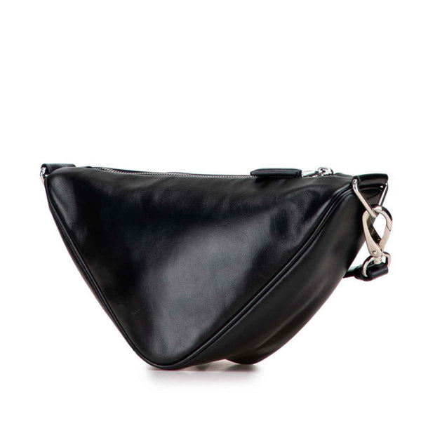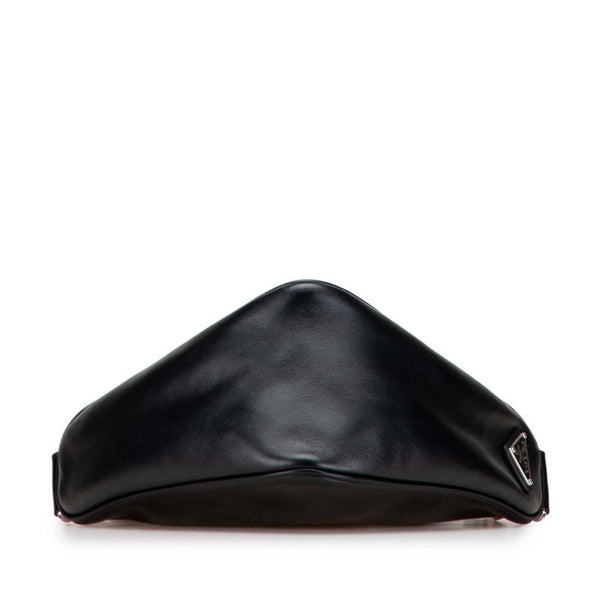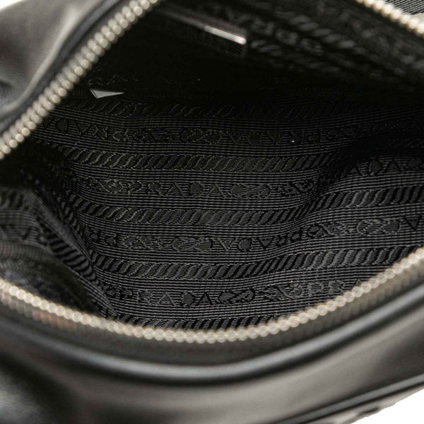 Prada Triangle Embossed Logo Shoulder Bag 1BH190 Black Leather Women\'s PRADA