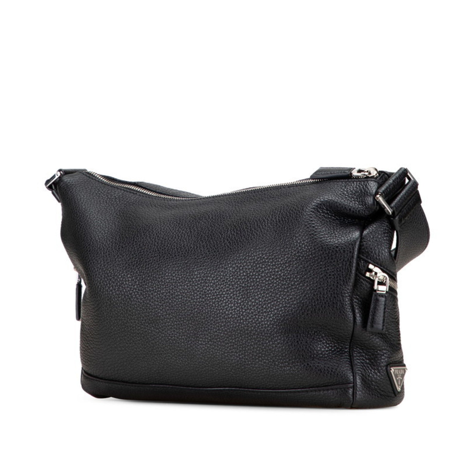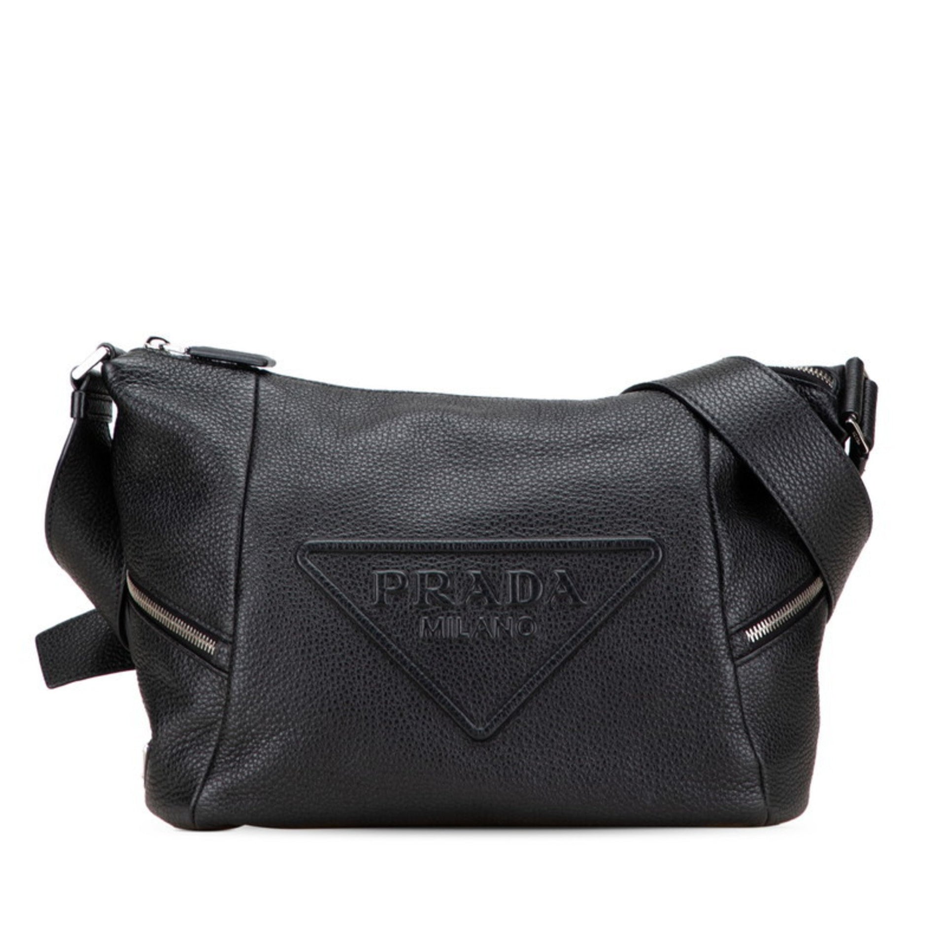 Prada Triangle Logo Crossbody Shoulder Bag 2VH165 Black Leather Women\'s PRADA