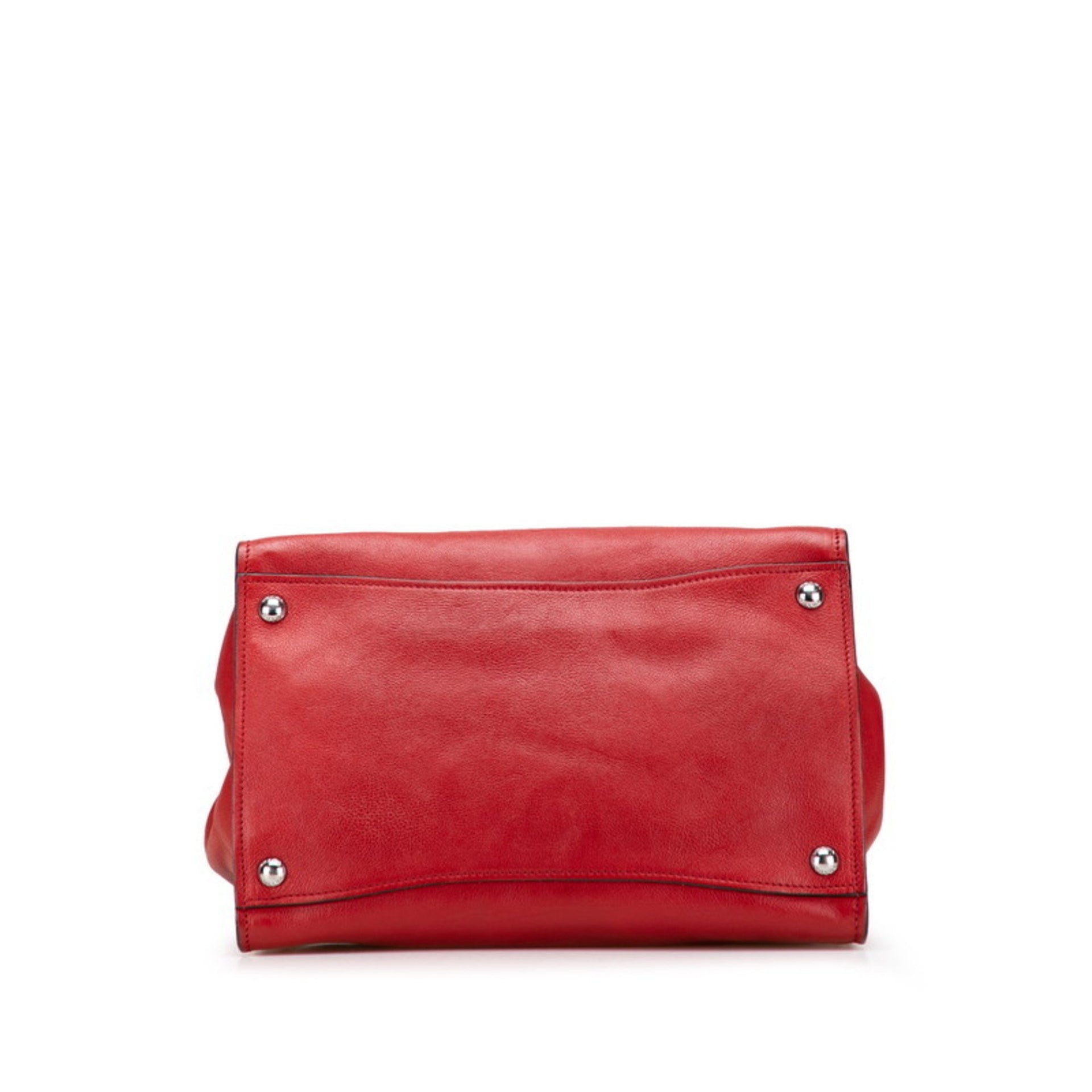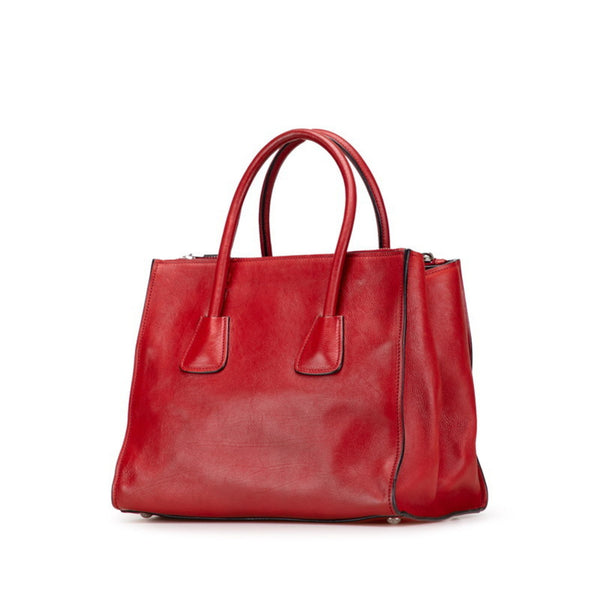 Prada Triangle Logo Plate Handbag Red Leather Women\'s PRADA