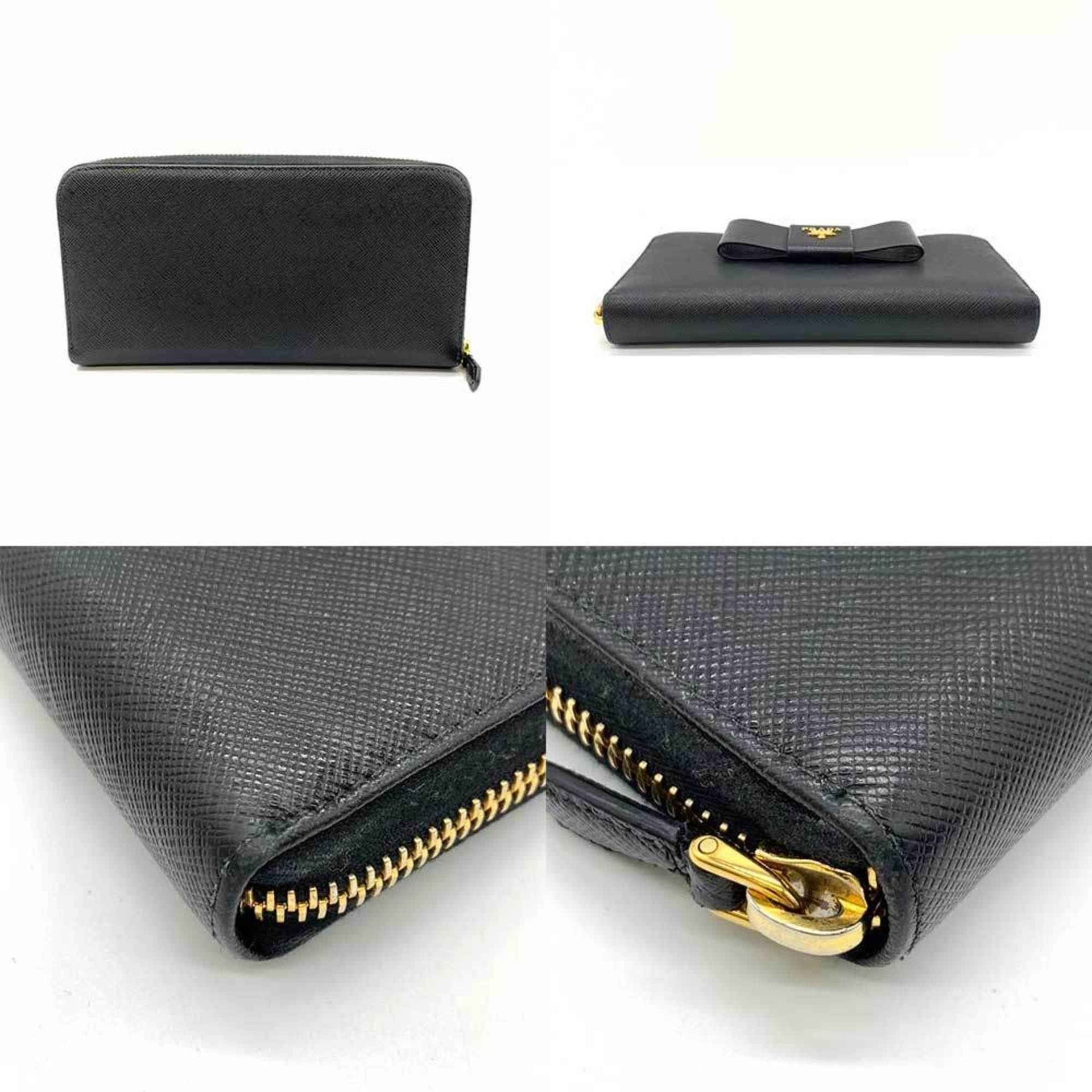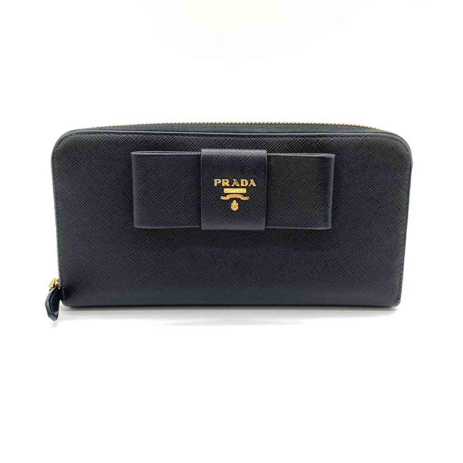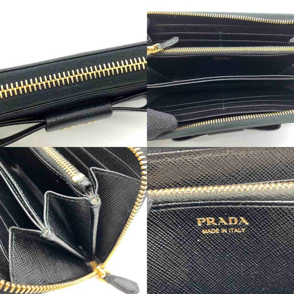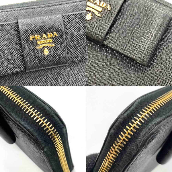 Prada Wallet Long Round Nero Black Ribbon Women\'s Saffiano Leather 1ML506 PRADA