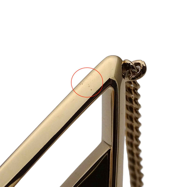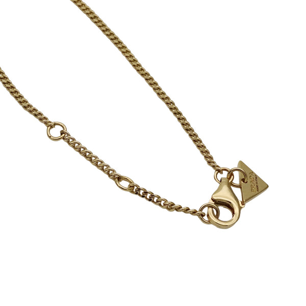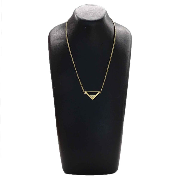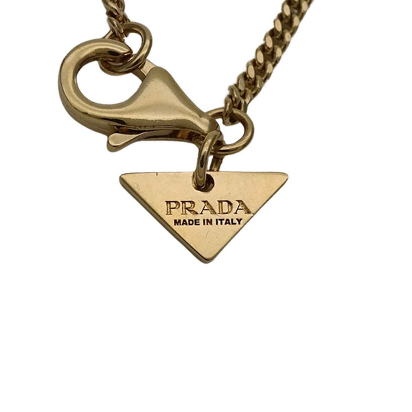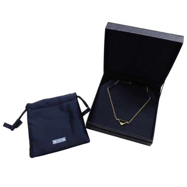 Prada women\'s branded metal necklace with a gold triangle and three-stroke logo, featuring kihei chain.