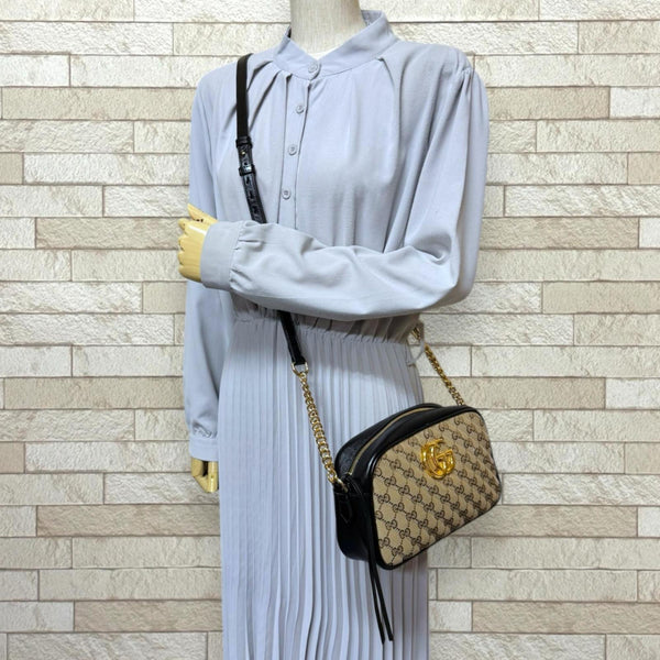 Pre-owned Gucci GG Marmont Shoulder Bag in Brown Canvas (447632) for Women.