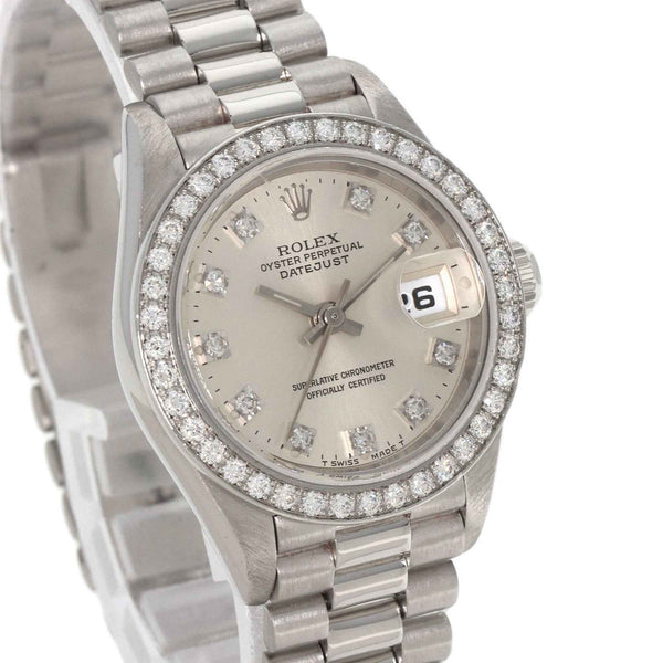 Rolex 69136G Datejust 10P Bezel Diamond Watch Platinum PT Ladies ROLEX