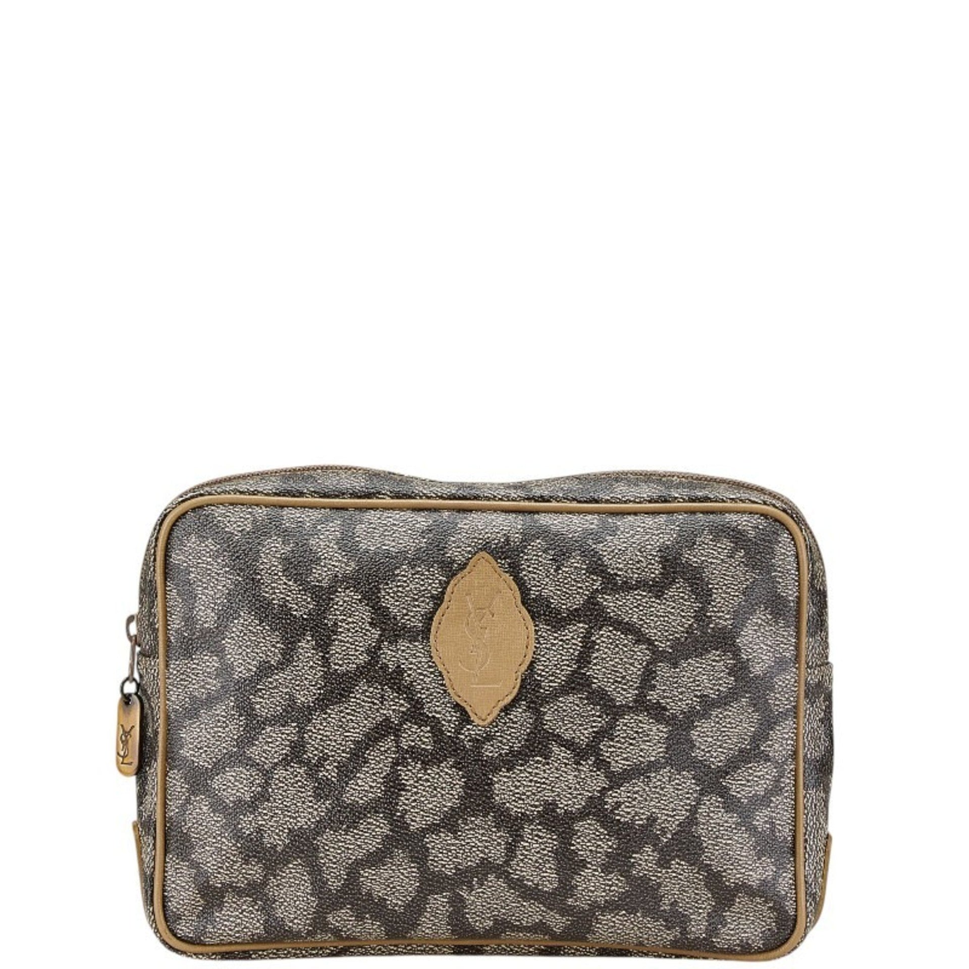 Saint Laurent Giraffe Clutch Bag Second Beige Brown Leather Women\'s SAINT LAURENT