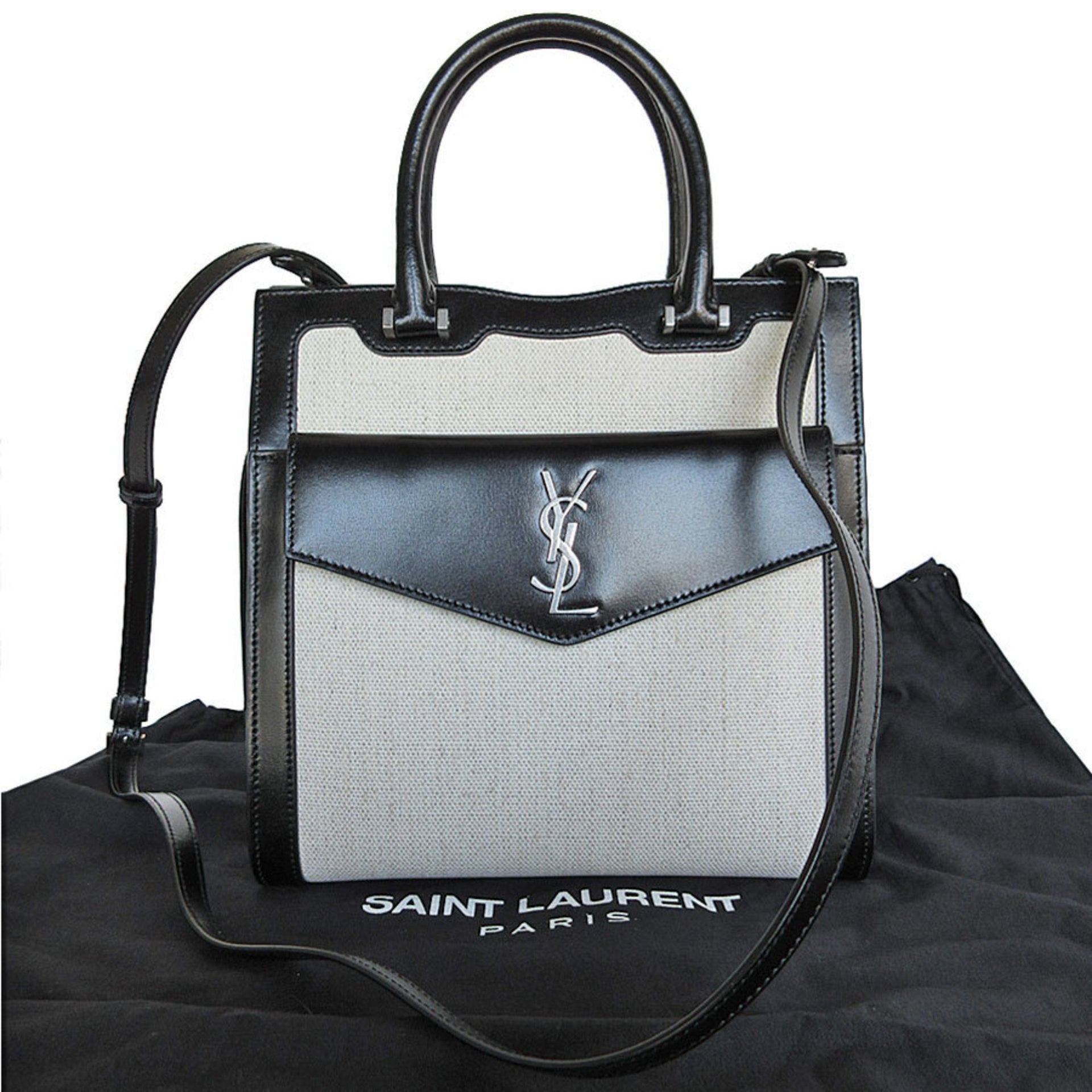 Saint Laurent SAINT LAURENT handbag shoulder bag Uptown small leather black ivory silver women\'s s0583k