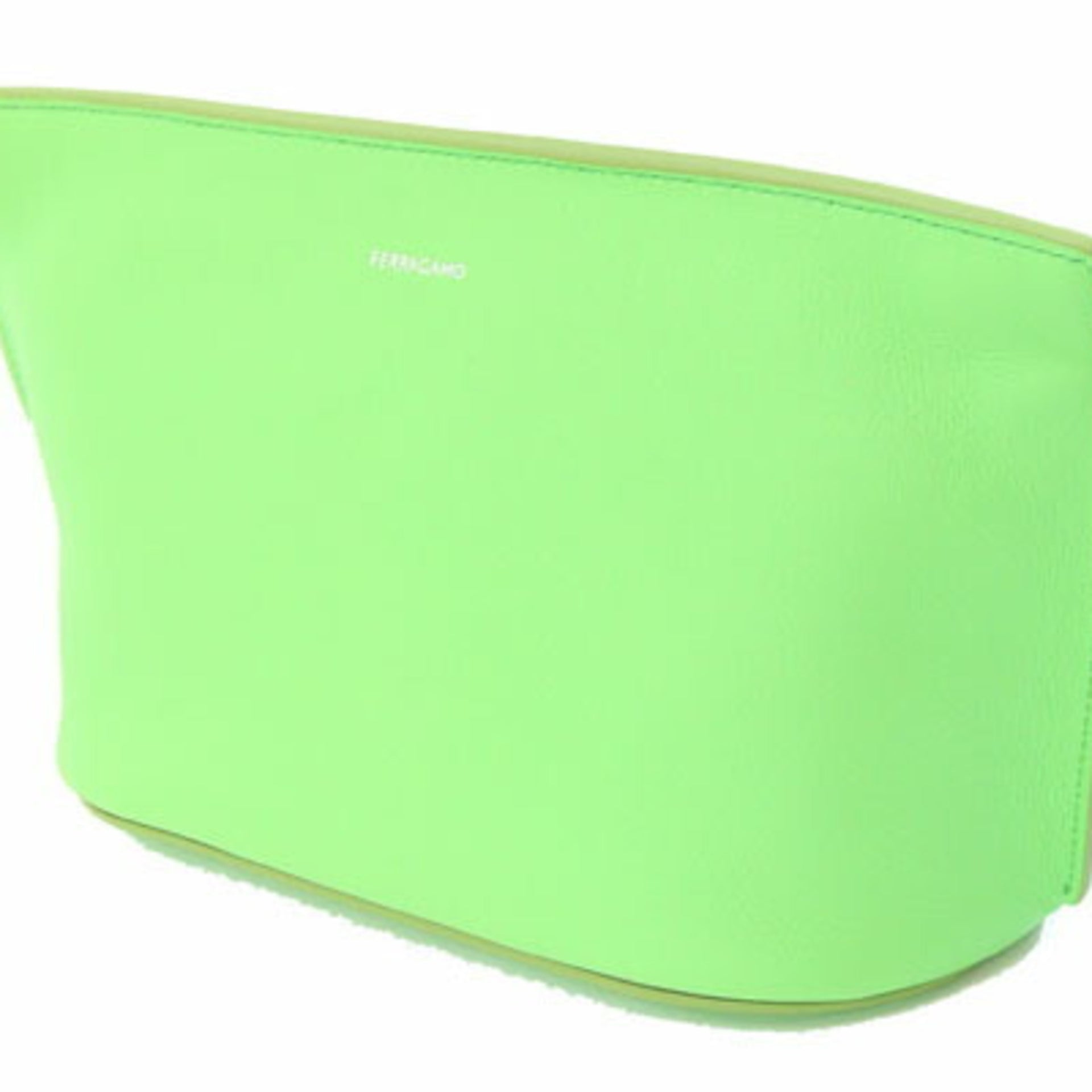 Salvatore Ferragamo Clutch Bag Size 24 1390 Light Green Leather Pouch for Women