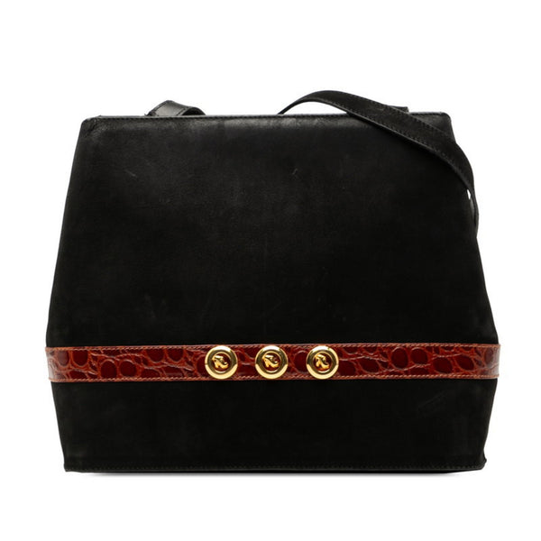 Salvatore Ferragamo crossbody shoulder bag in black and brown suede leather for women.