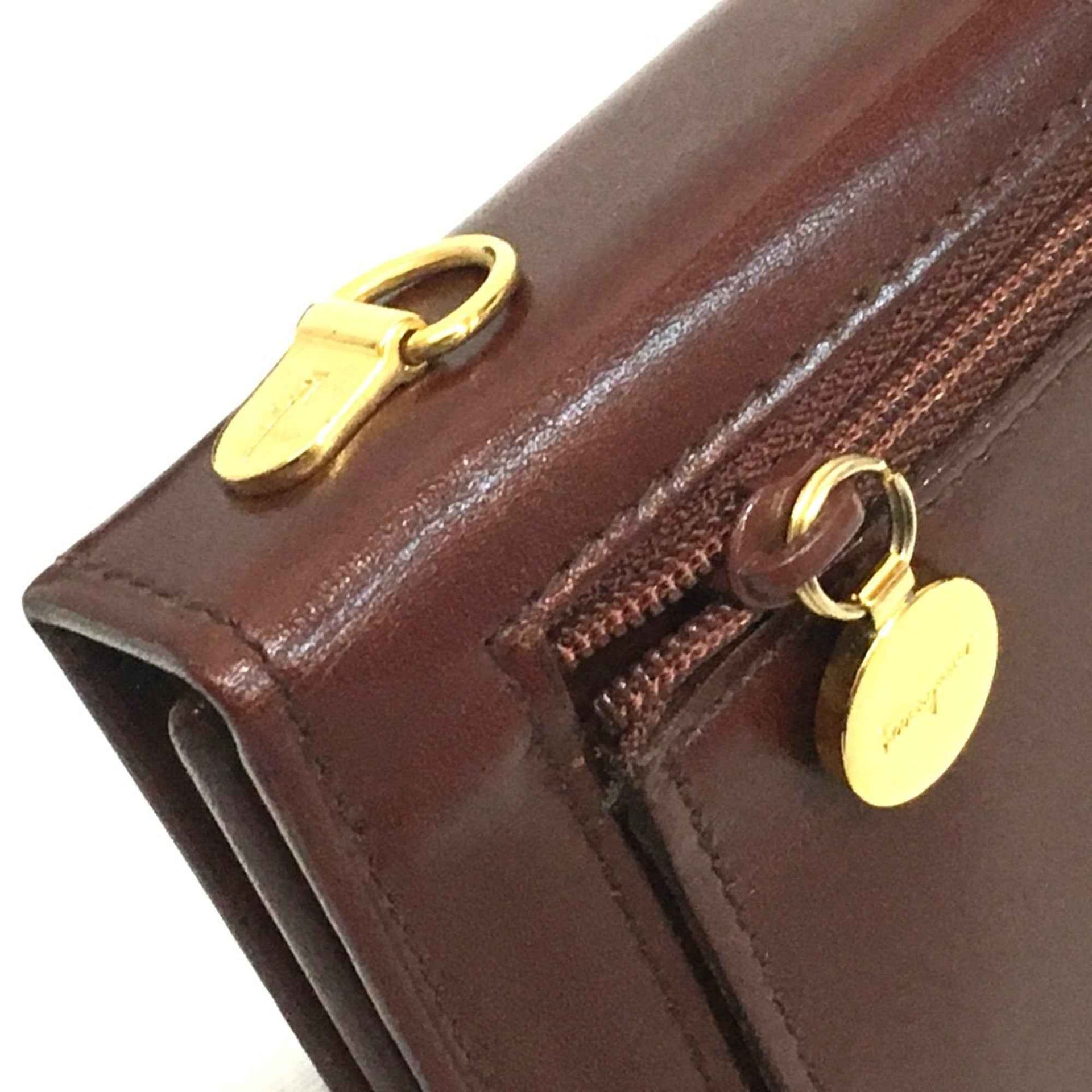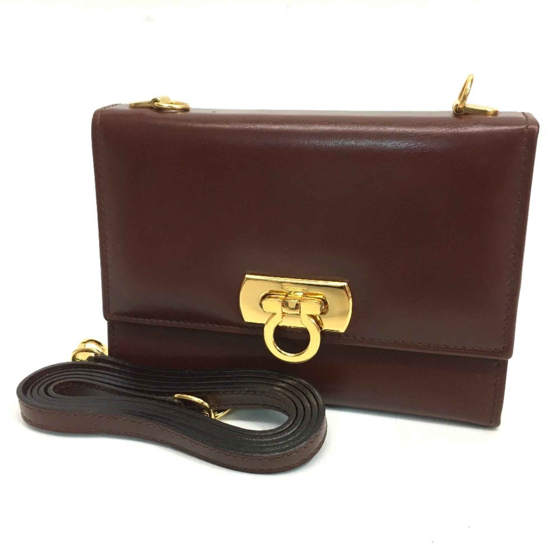 Salvatore Ferragamo Gancini bag wallet bag Shoulder Bag Brown GoldHardware
