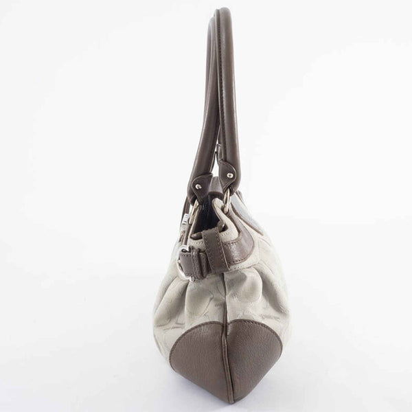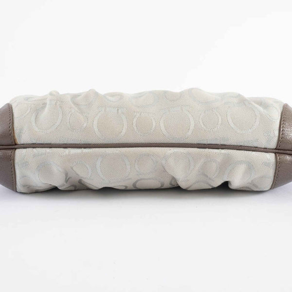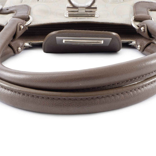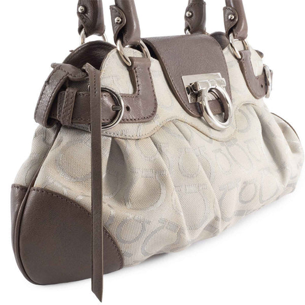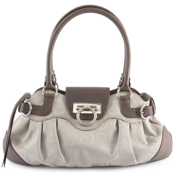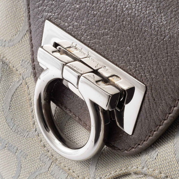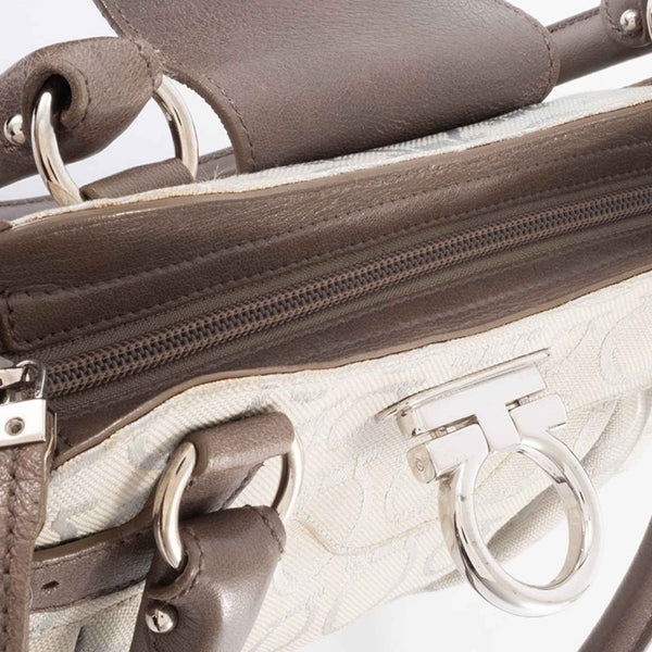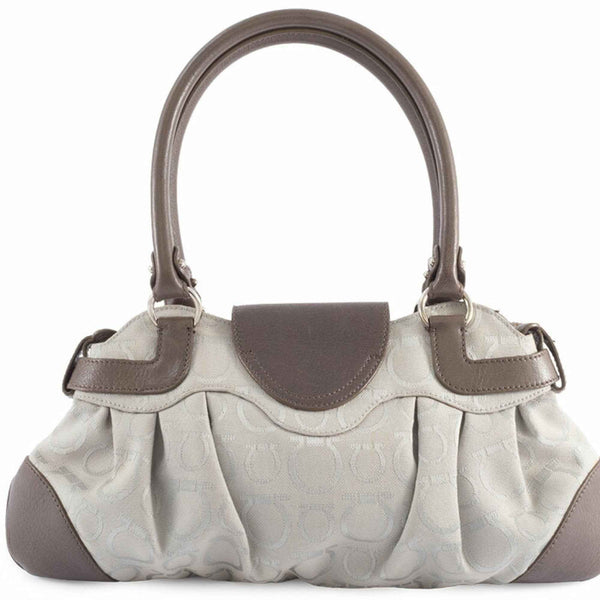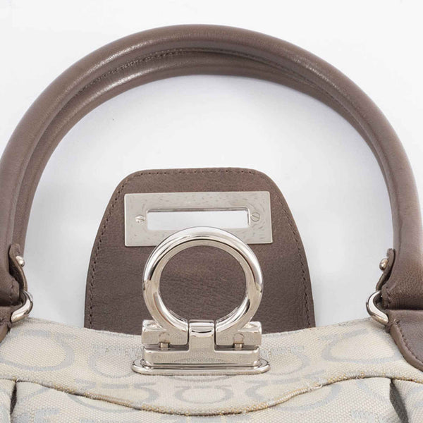 Salvatore Ferragamo Gancini Canvas Handbag AU-21-6326 Leather Cream Women\'s