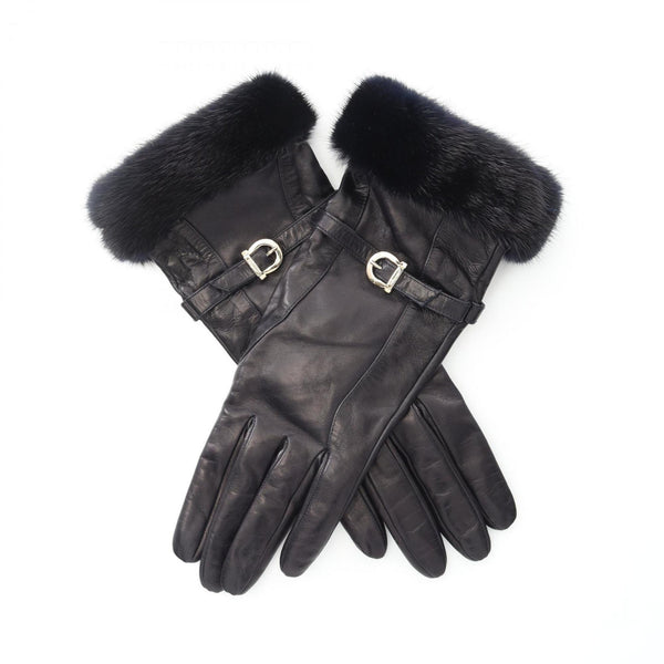 Salvatore Ferragamo Gancini Gloves in Leather and Mink, Women\'s, Black