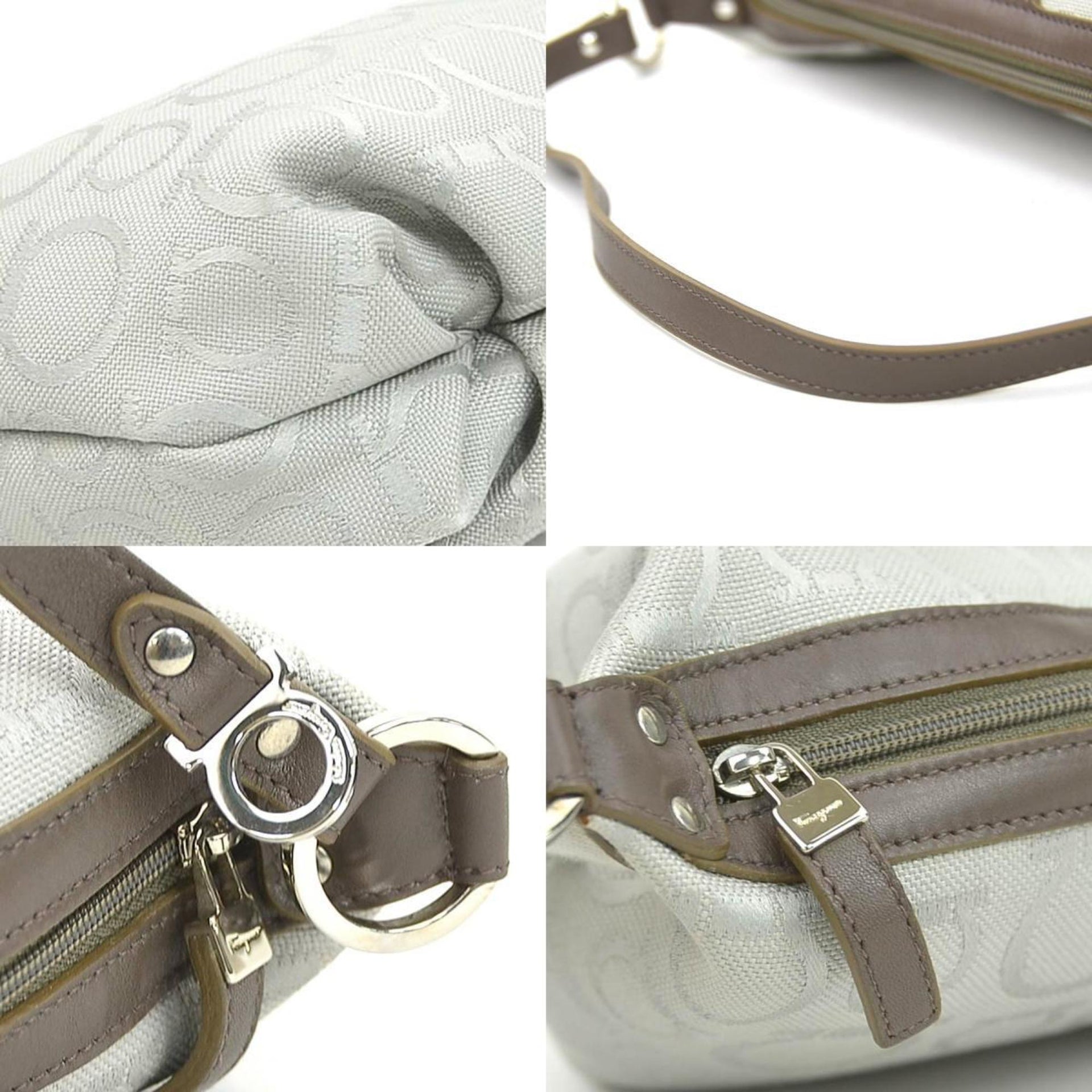 Salvatore Ferragamo Gancini handbag in nylon canvas and leather, brown gray, women\'s, h31616a