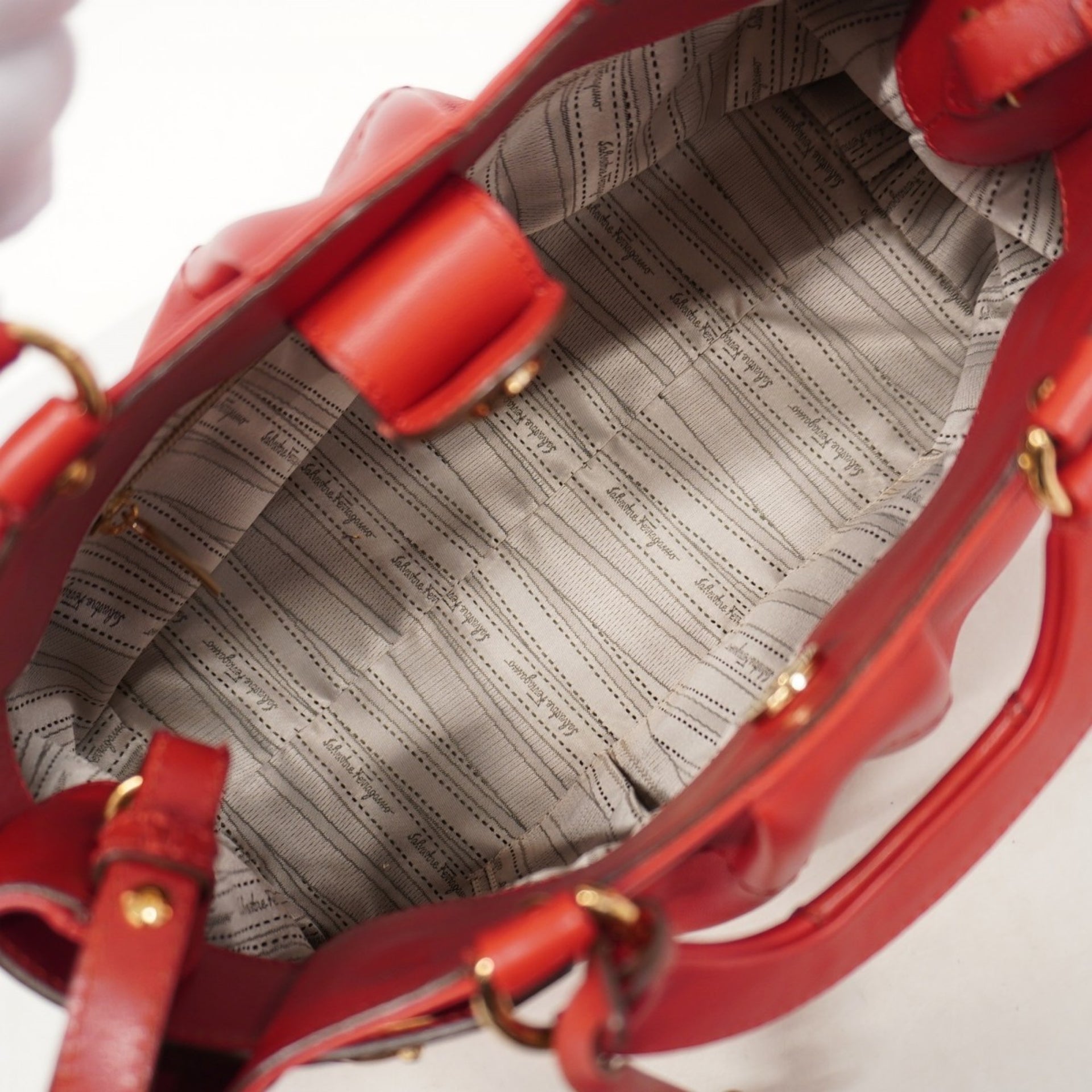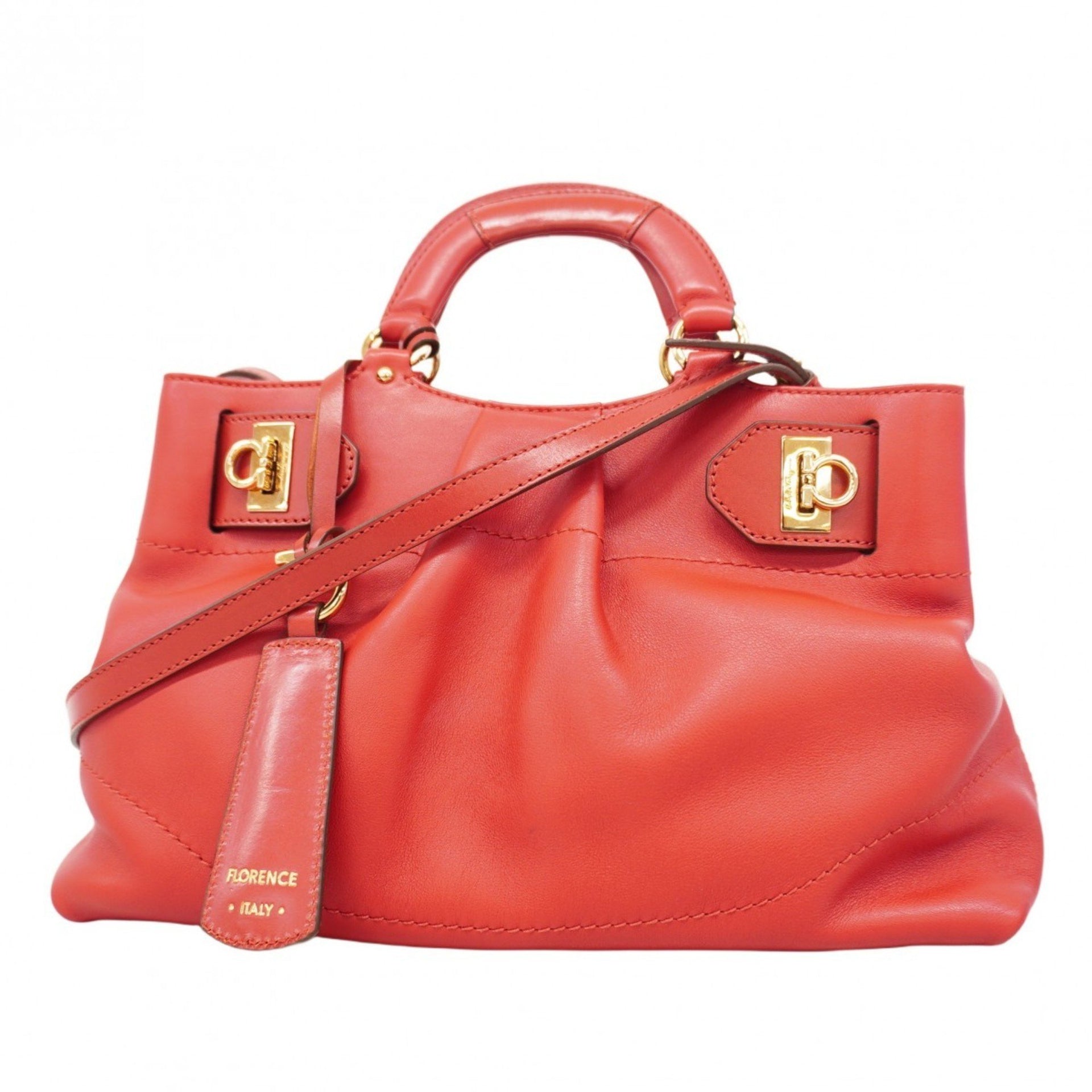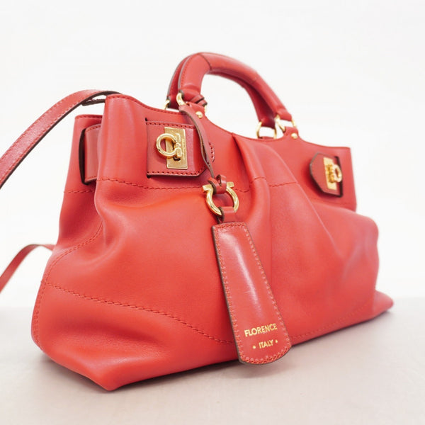 Salvatore Ferragamo Gancini Leather Handbag, Red, 2-Way Bag for Women
