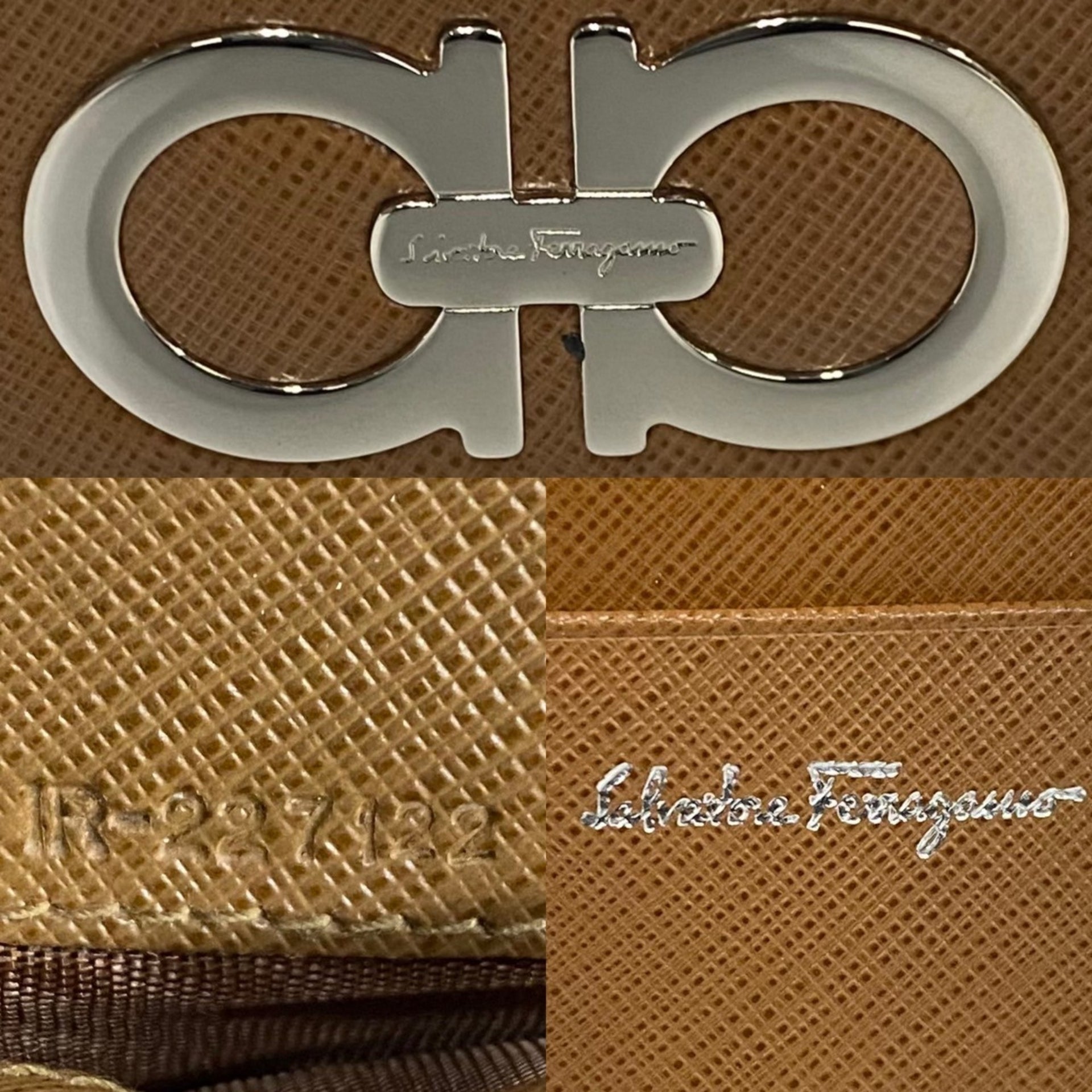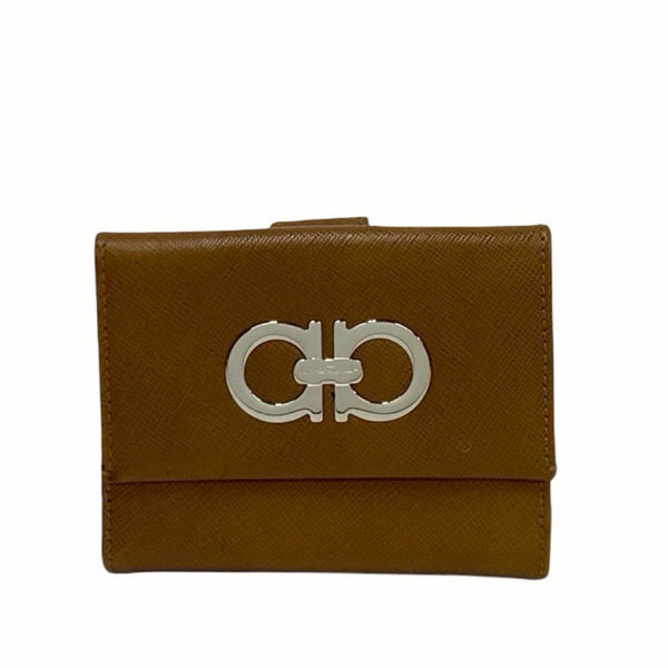 Salvatore Ferragamo Gancini logo hardware genuine leather bi-fold mini wallet brown 89156