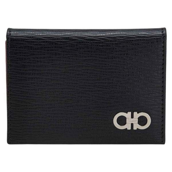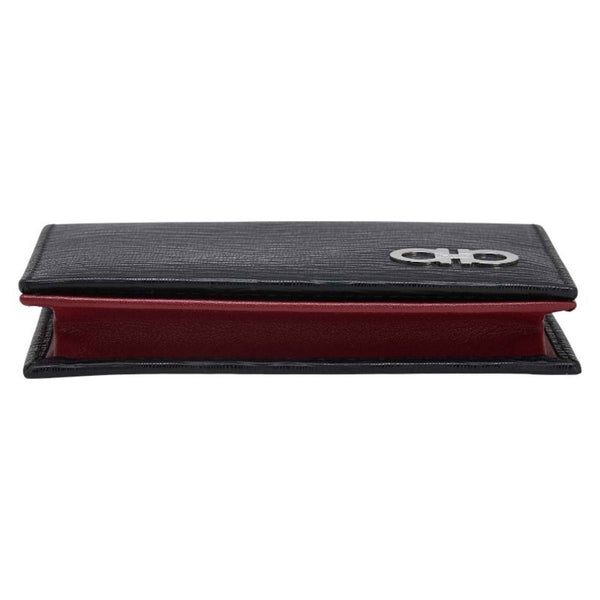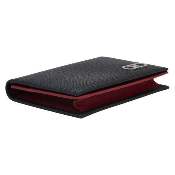 Salvatore Ferragamo Gancini Pass Case, Business Card IV-66A062, Black Leather, Men\'s