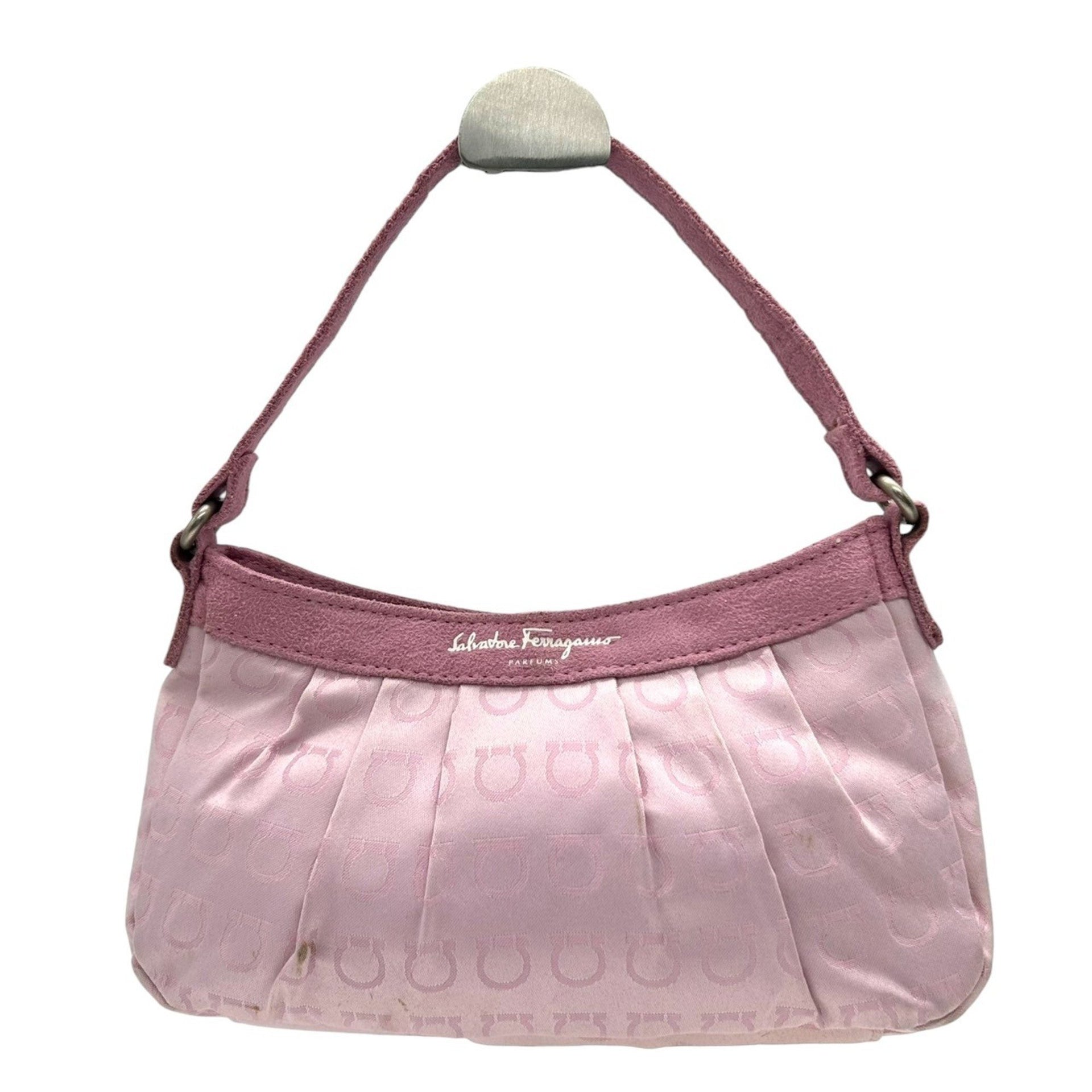Salvatore Ferragamo handbag, mini bag, and accessory pouch in Gancini jacquard canvas suede, pink, women\'s size 39