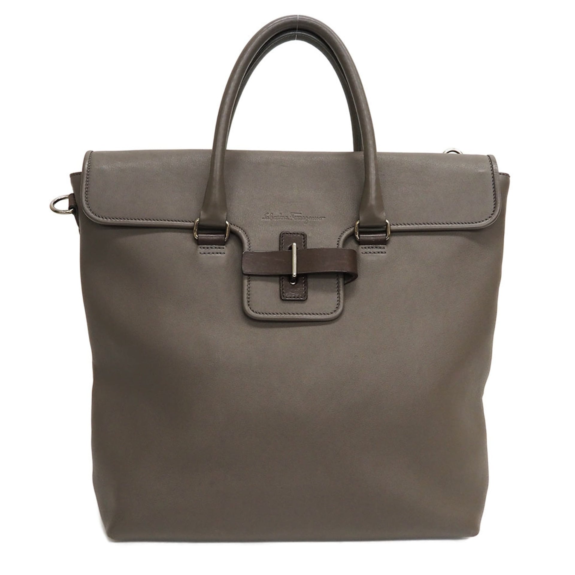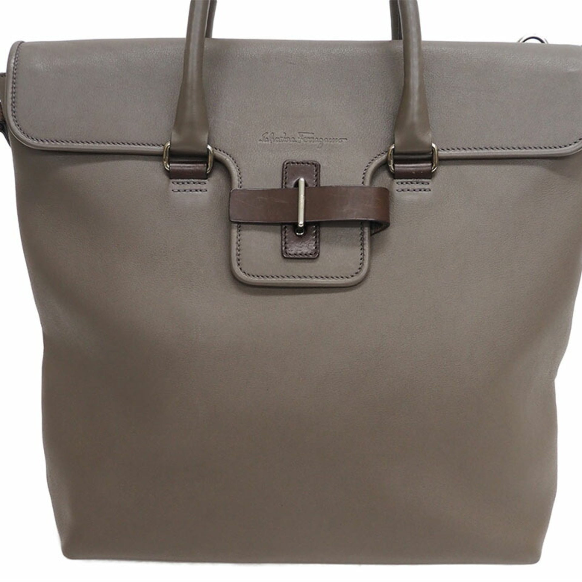 Salvatore Ferragamo Leather Large Tote Bag Greige Belt Flap Women\'s