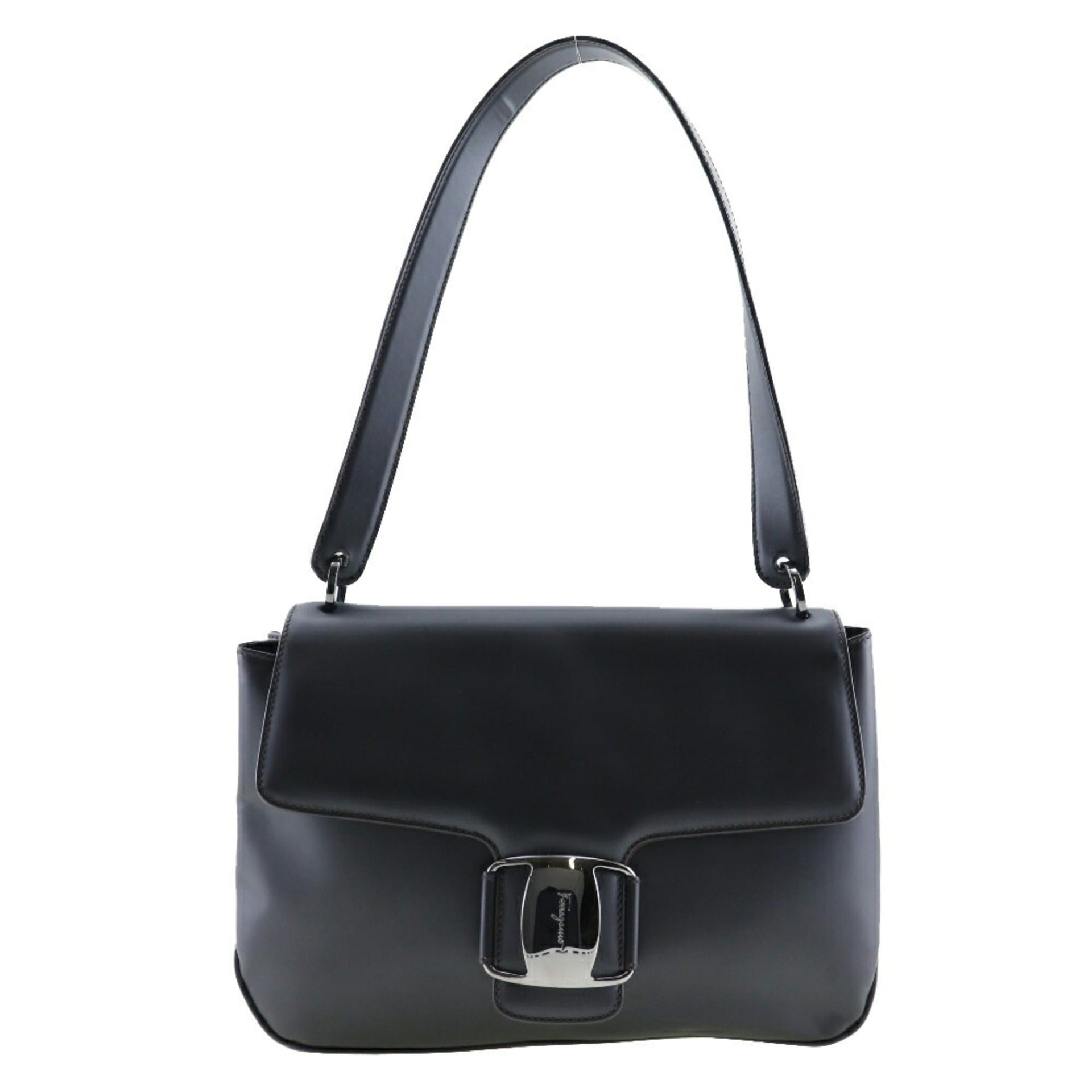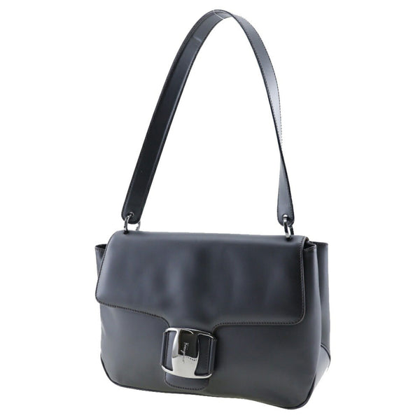 Salvatore Ferragamo One Shoulder Bag Vara 21.7643 Calf Made in Italy Black A5 Magnet Type Belt Ladies