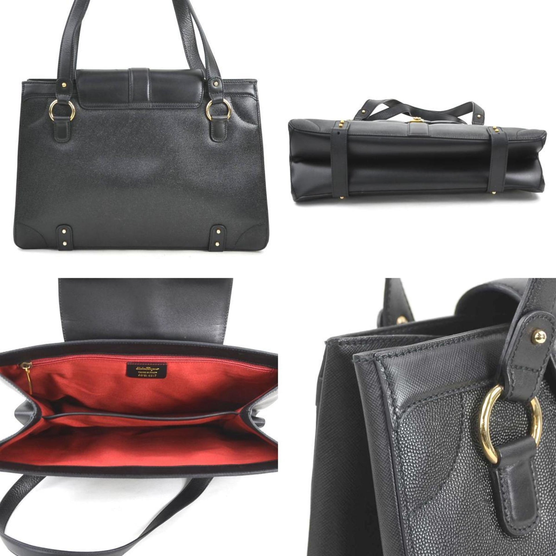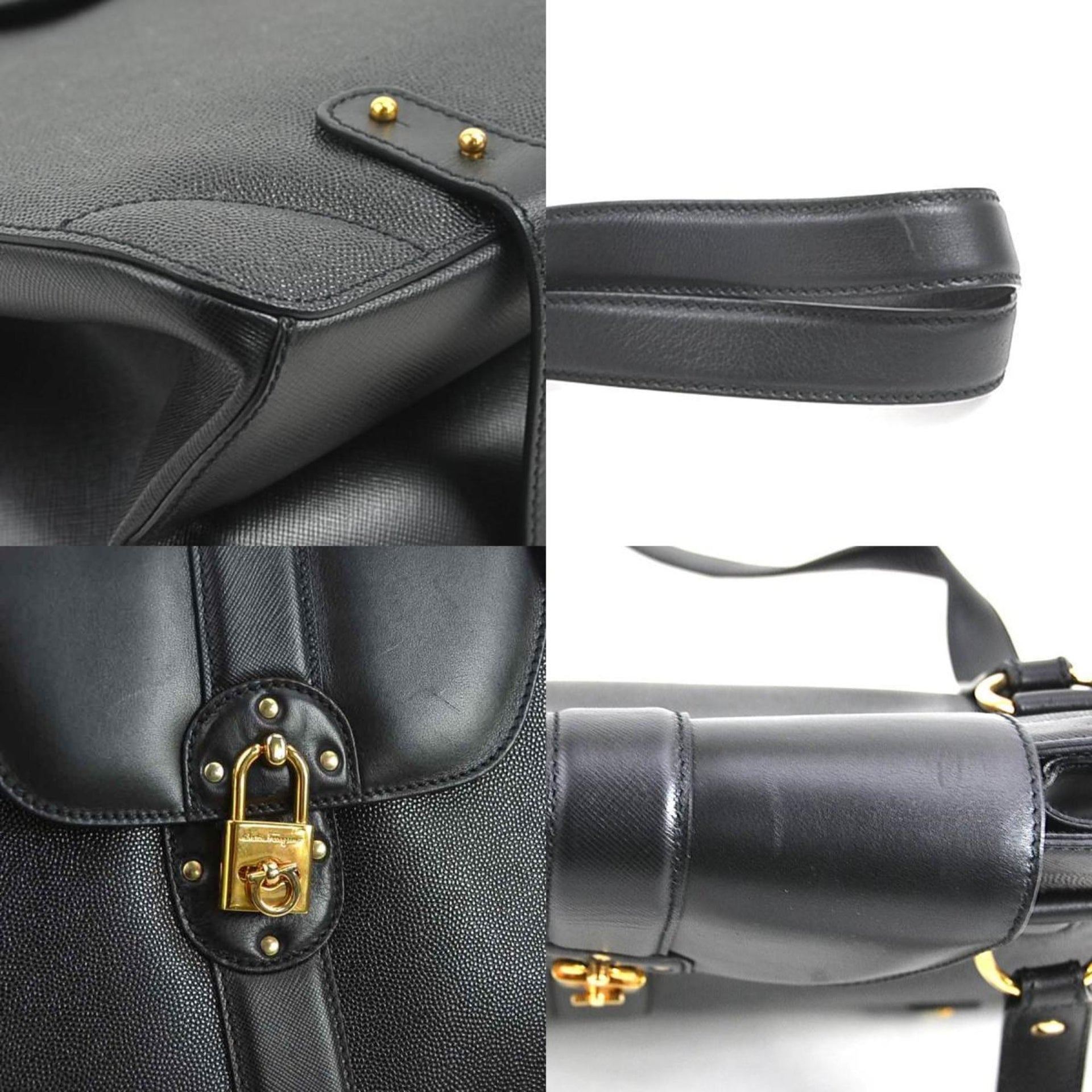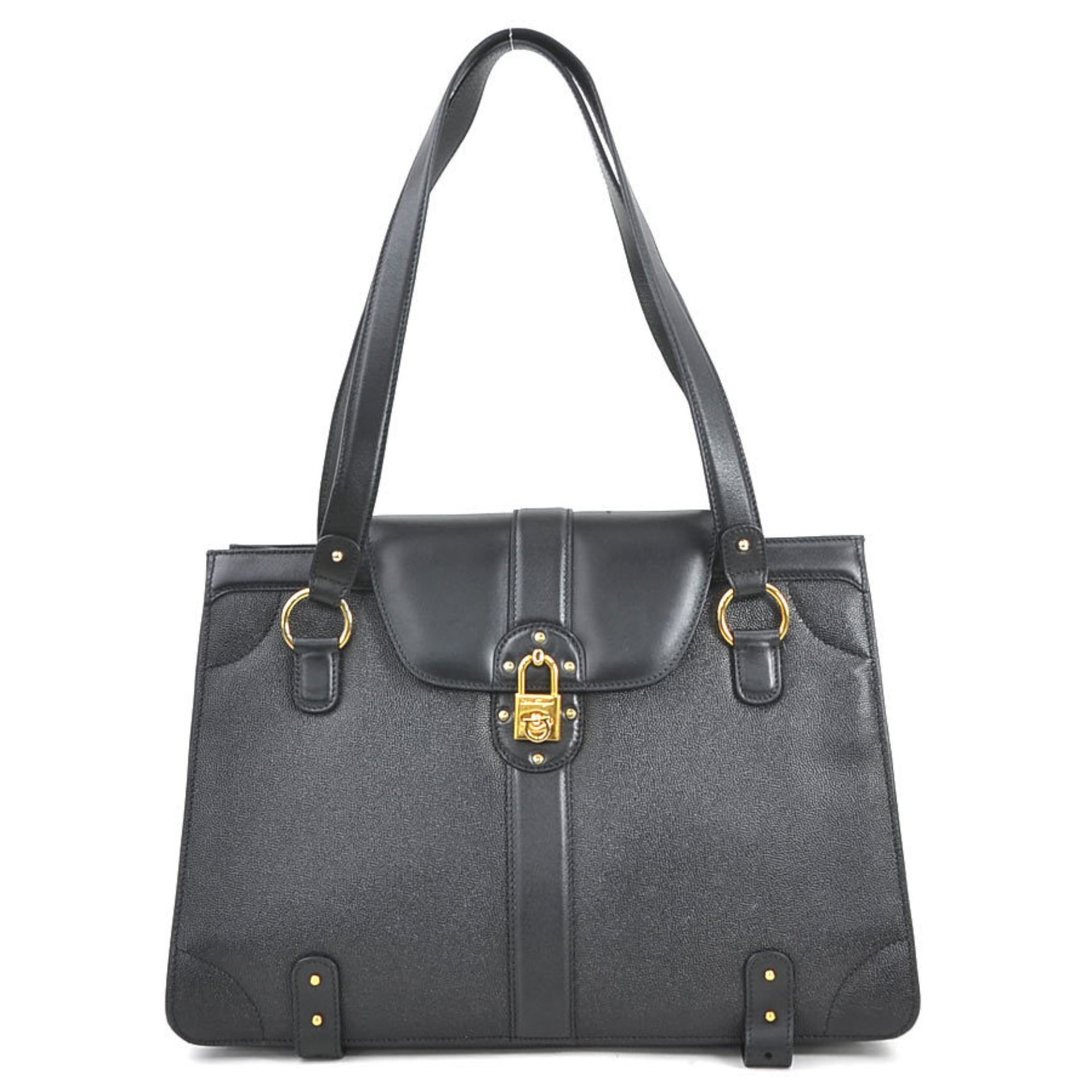 Salvatore Ferragamo Shoulder Bag Gancini Leather Black Gold Women\'s e60471a