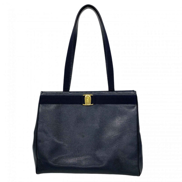Salvatore Ferragamo Vara Leather Shoulder Bag in Navy Blue for Women