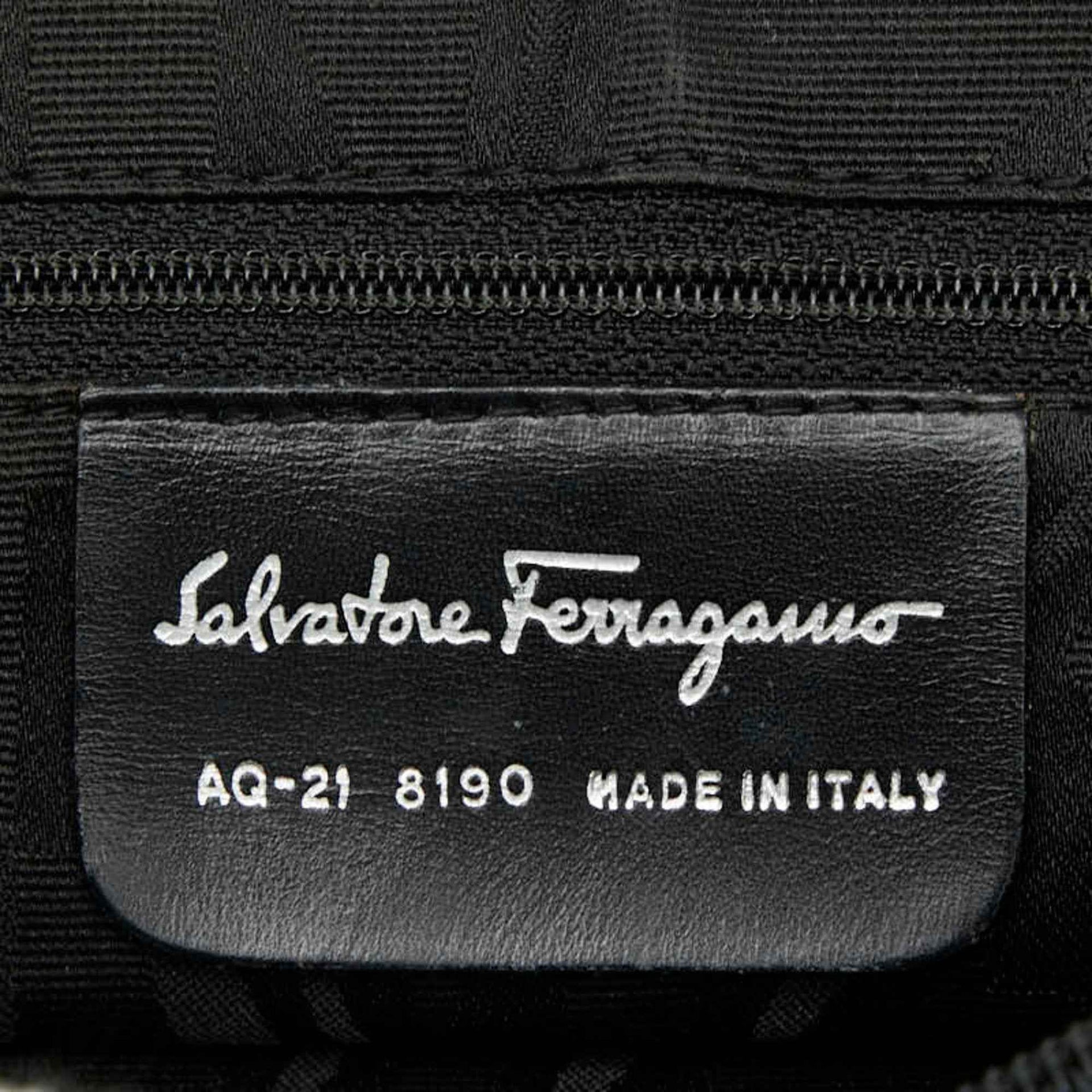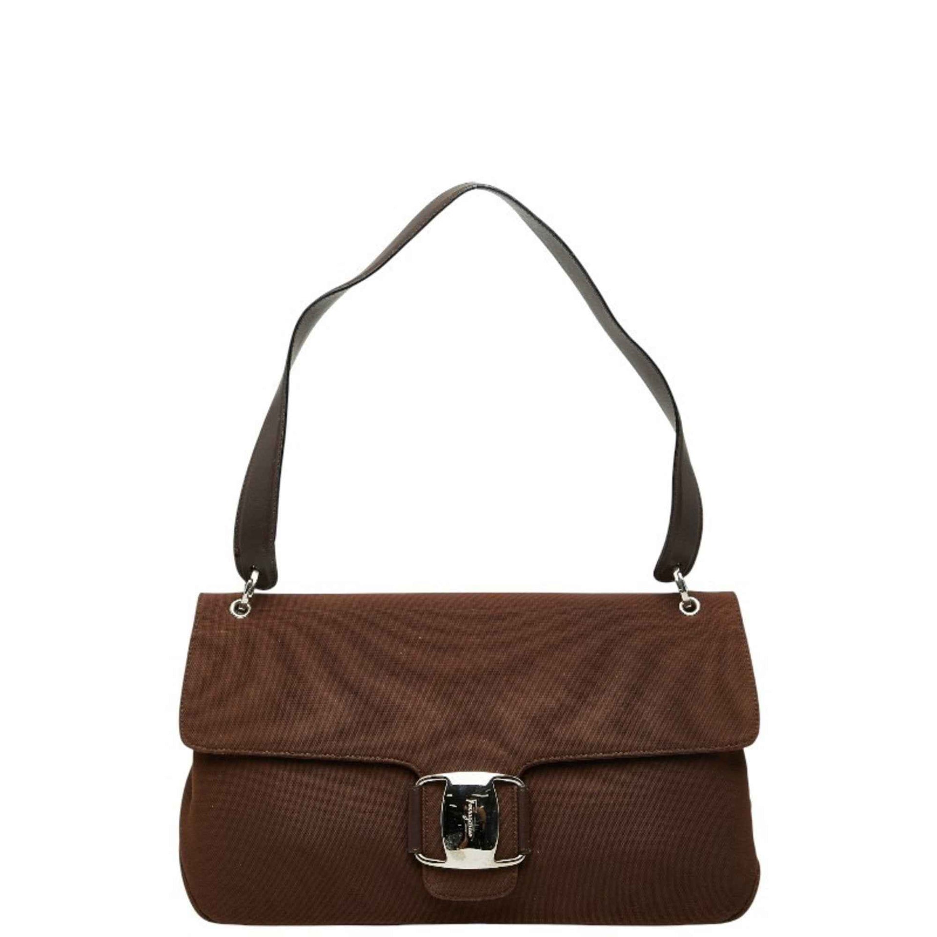 Salvatore Ferragamo Vara One-Shoulder Handbag AQ-21 8190 Brown Canvas and Leather Women\'s