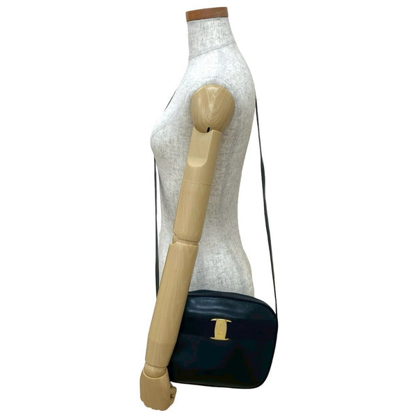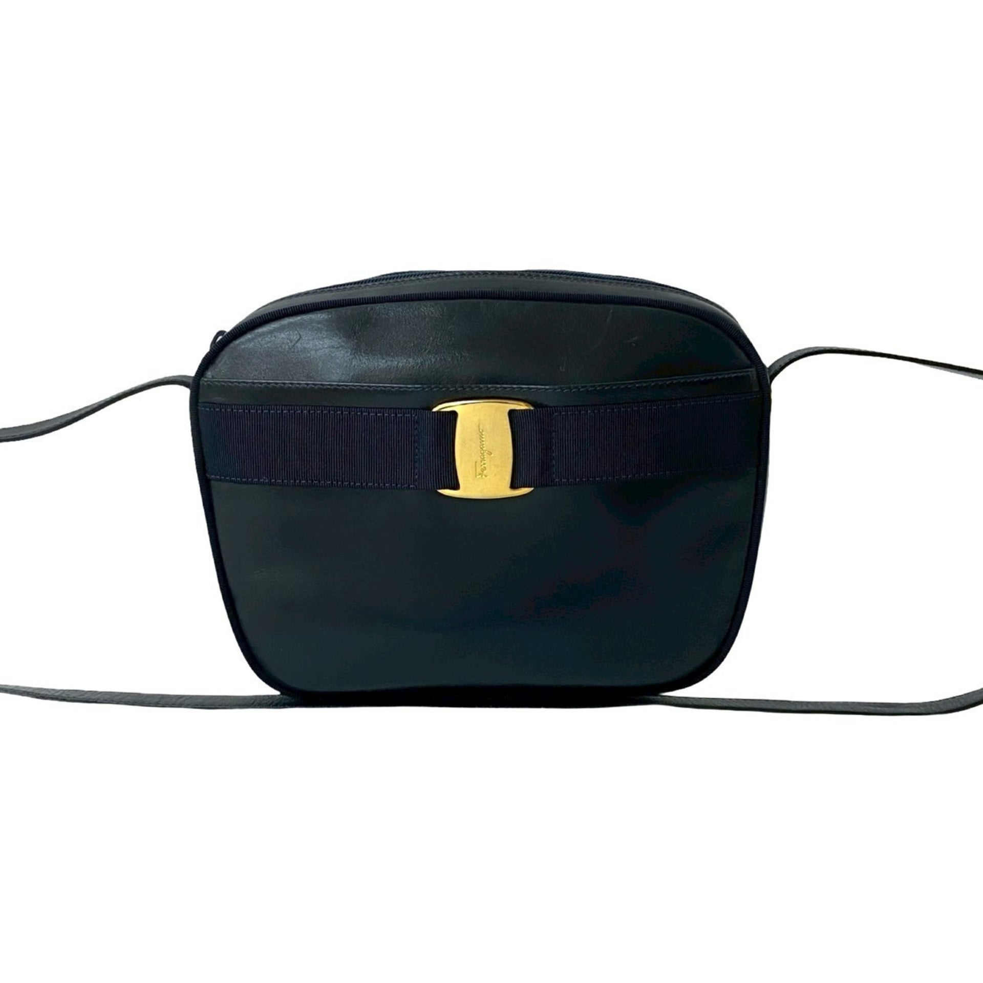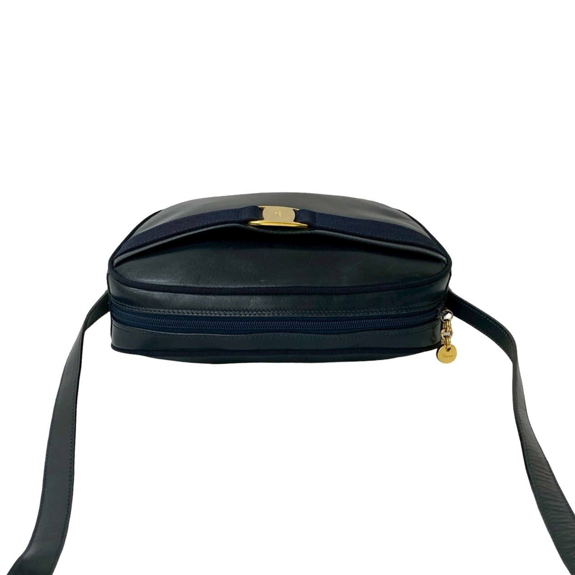 Salvatore Ferragamo Vara Ribbon Leather Shoulder Bag/Pochette in Navy Blue (326-5)