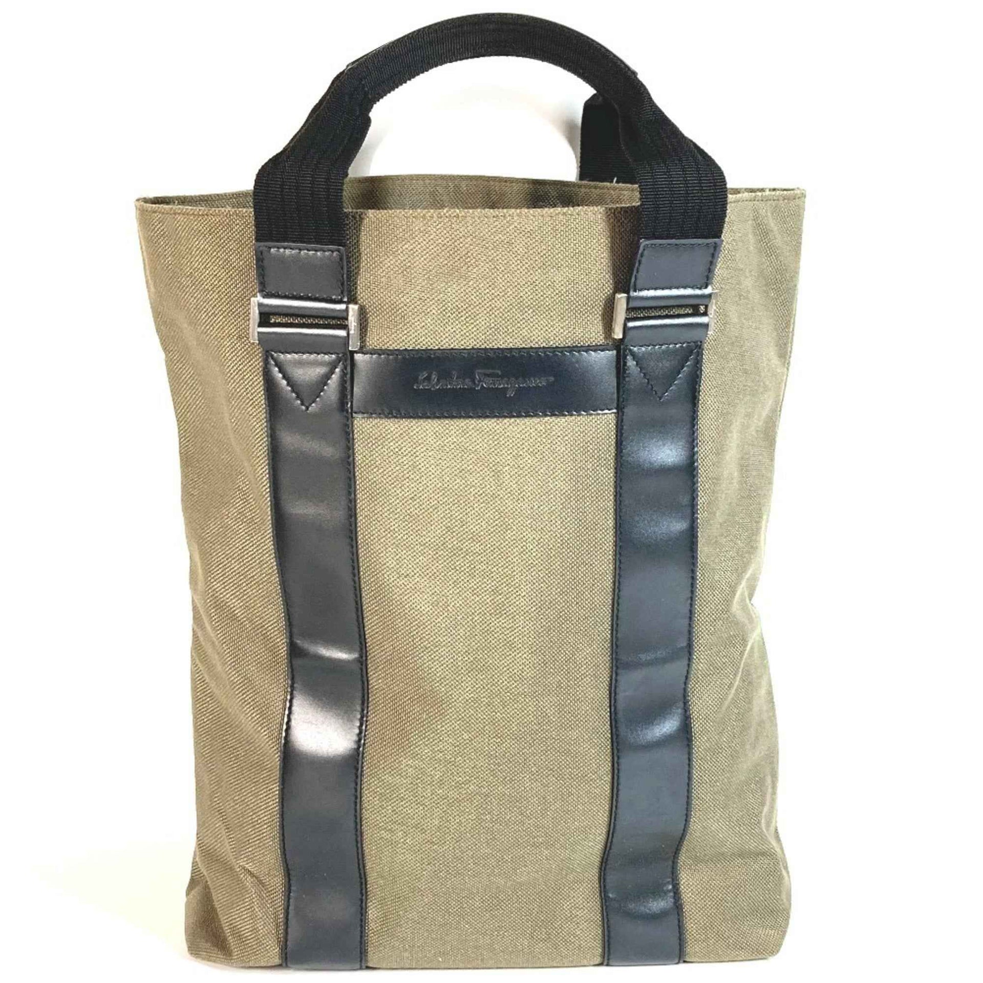 Salvatore Ferragamo vertical tote bag with logo, business bag, shoulder leather/canvas, unisex, khaki