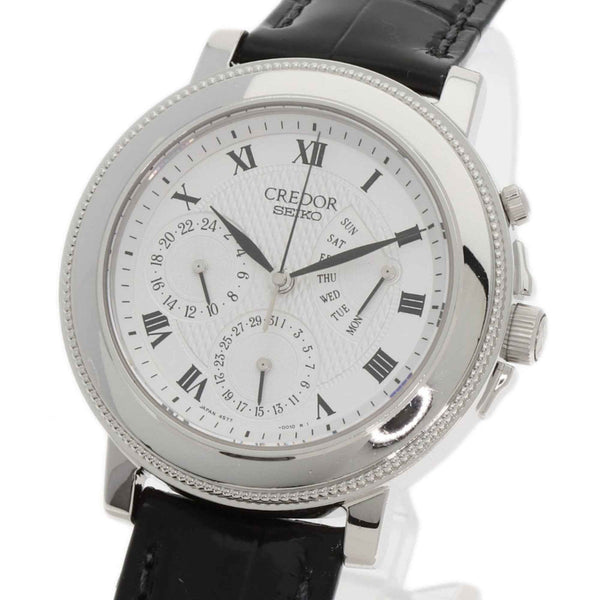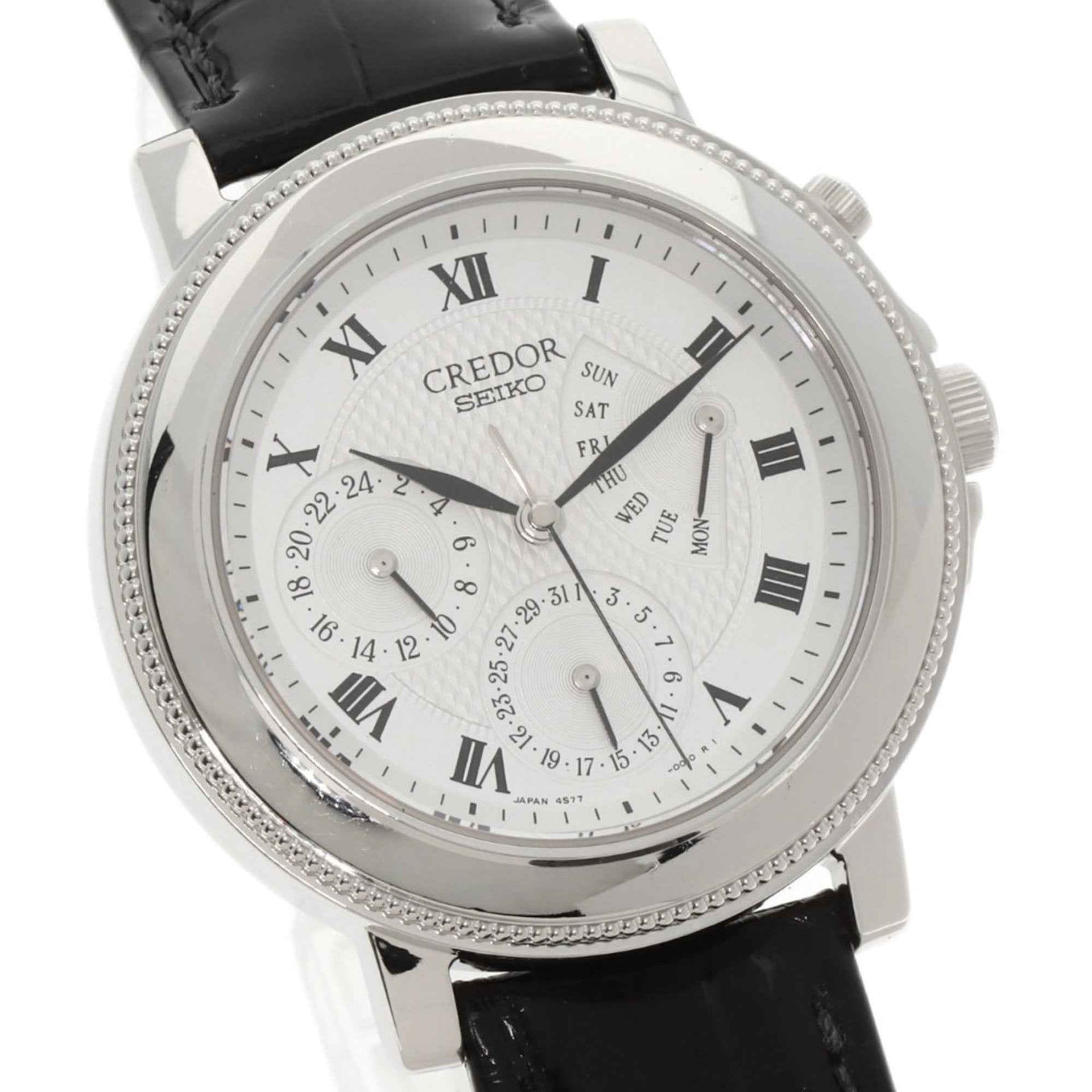 Seiko GBBG999 4S77-0010 Credor Retrograde Men\'s Watch in Platinum PT950 with Leather Strap