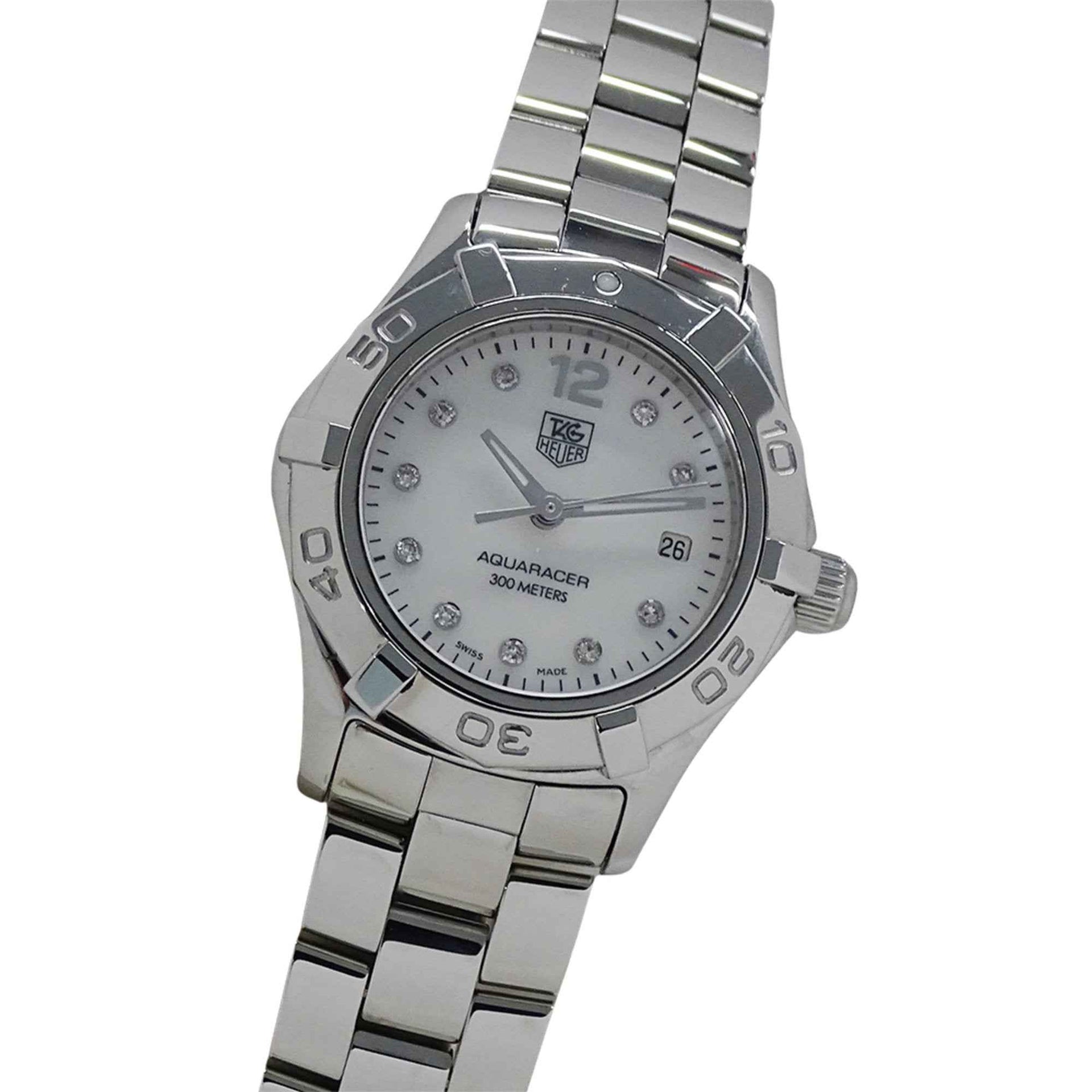 TAG Heuer Aquaracer WAF1415 BA0824 Women\'s Watch with Shell, 10 Diamonds, Date Display, Quartz Movement, Stainless Steel, Silver, Polished