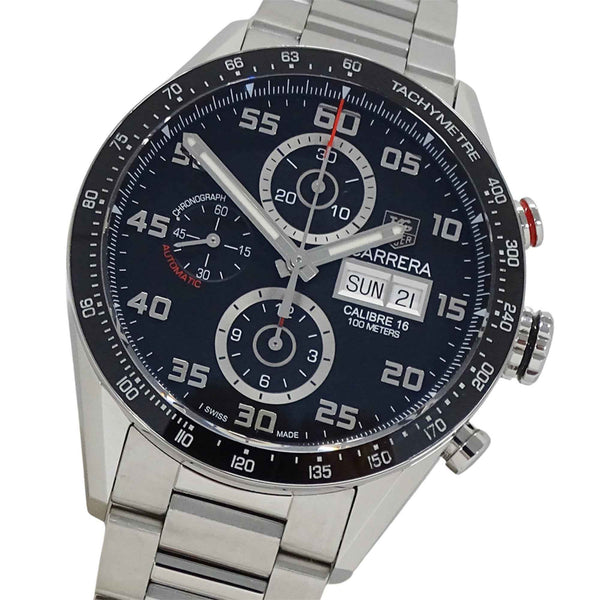 TAG Heuer Carrera CV2A1R BA0799 Men\'s Watch, Caliber 16 Chronograph Automatic, Stainless Steel, Silver/Black, Polished Back