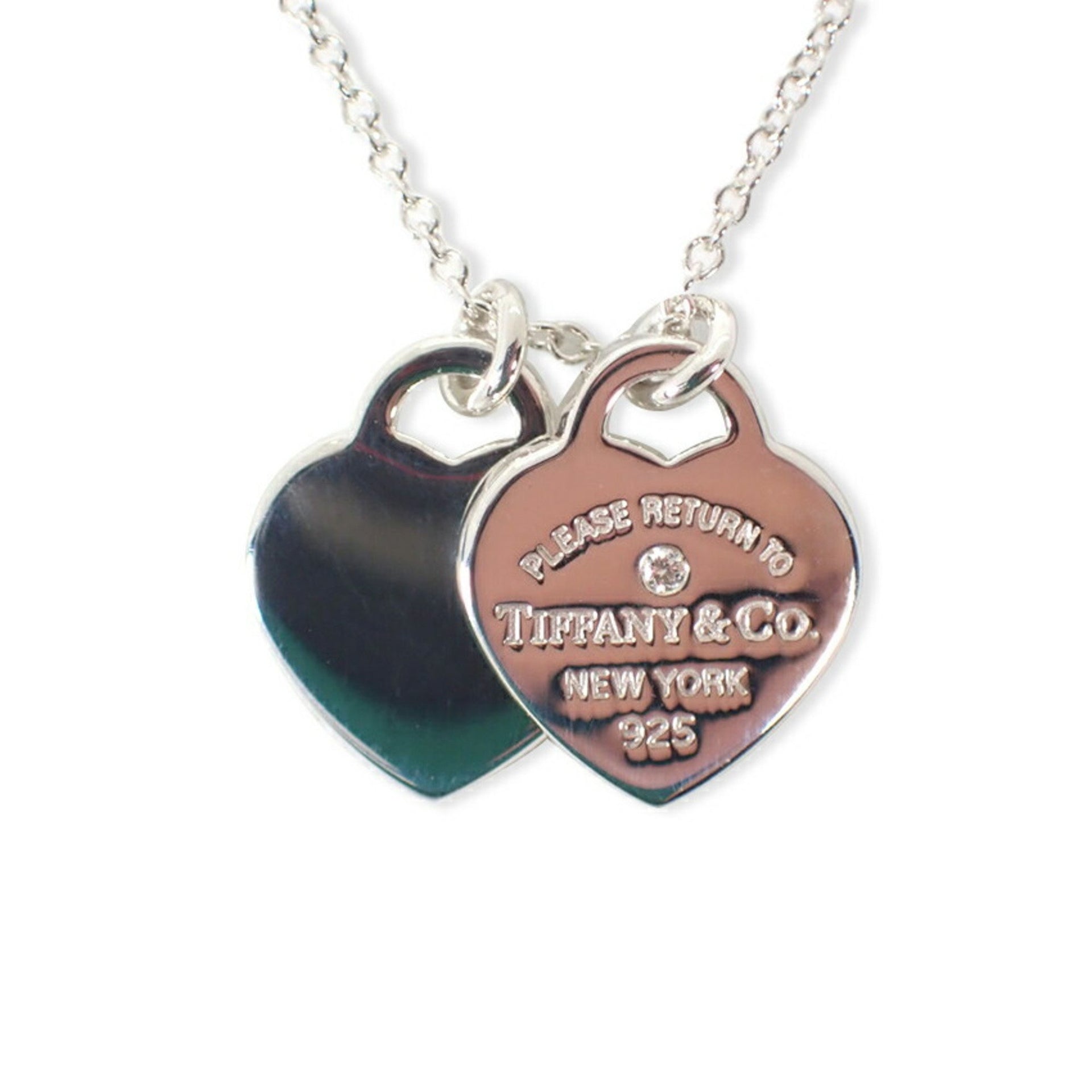 TIFFANY 925 Diamond 1pc Double Heart Pendant