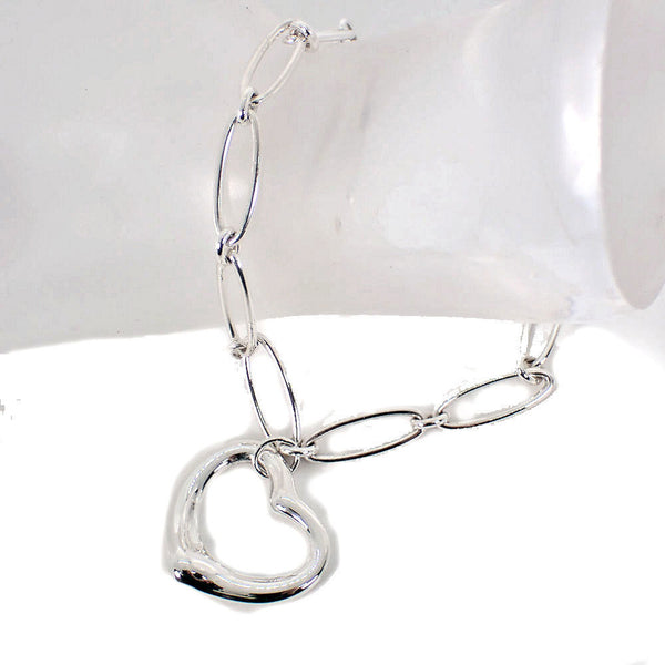 TIFFANY 925 Heart Oval Link Chain Bracelet j5-2