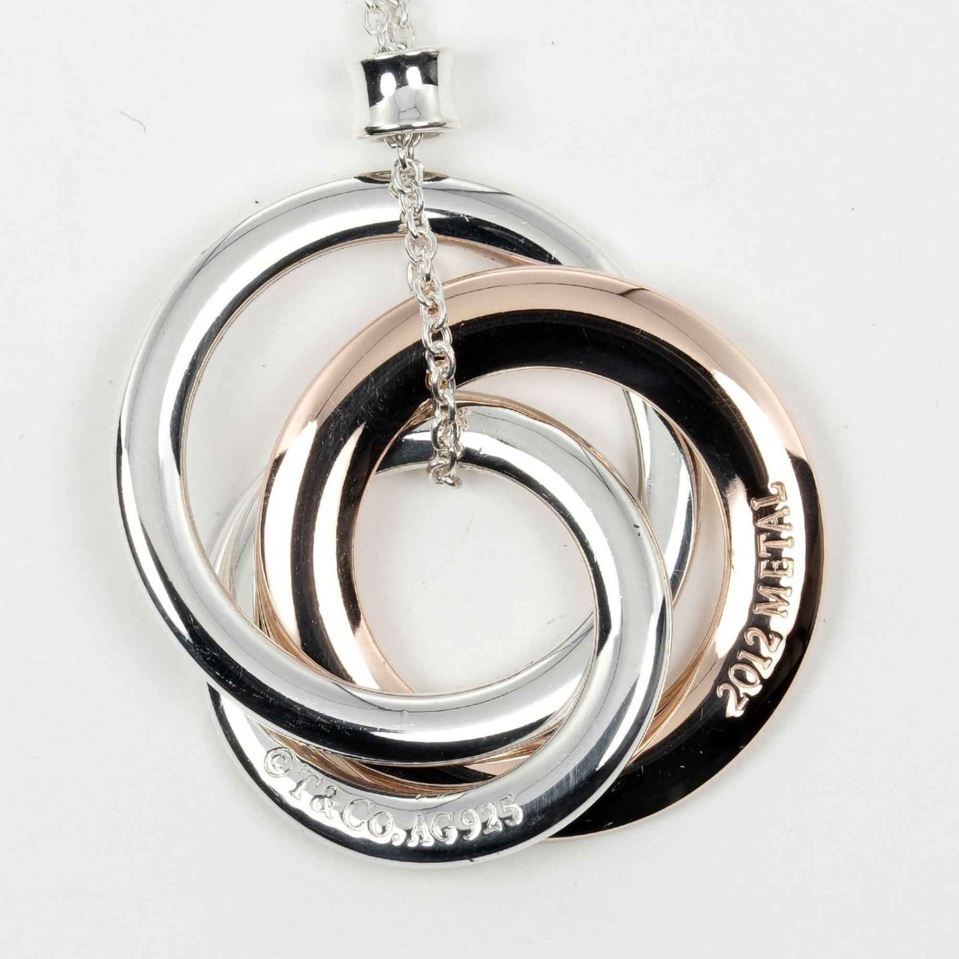 Tiffany & Co. 1837 Interlocking Circle Necklace, 925 Silver, Rubedo Metal, Approx. 5.11g