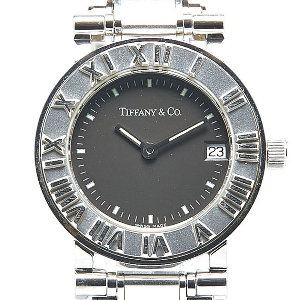 Tiffany & Co. Atlas Quartz Watch with Black Dial and Stainless Steel, Women\'s