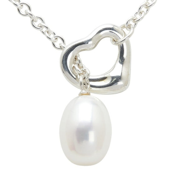 Tiffany & Co. Elsa Peretti Open Heart Lariat Pearl Necklace in 925 Sterling Silver for Women.