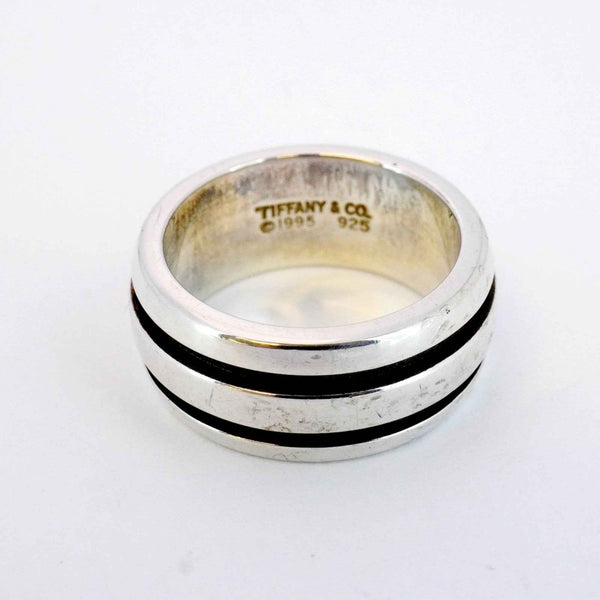 Tiffany & Co. Grooved Double Line Ring, Silver 925, Size 14.5, for Men and Women