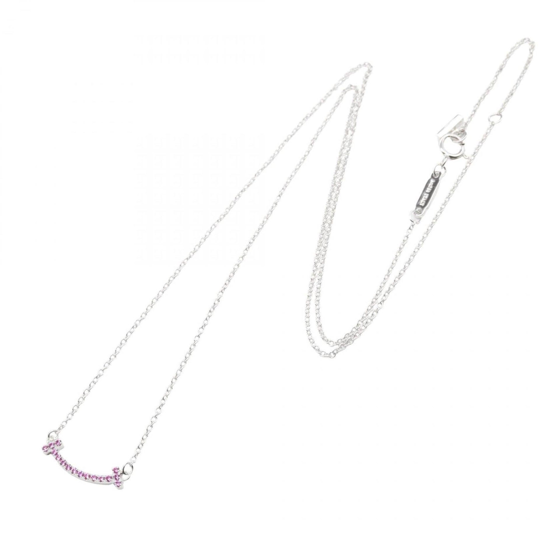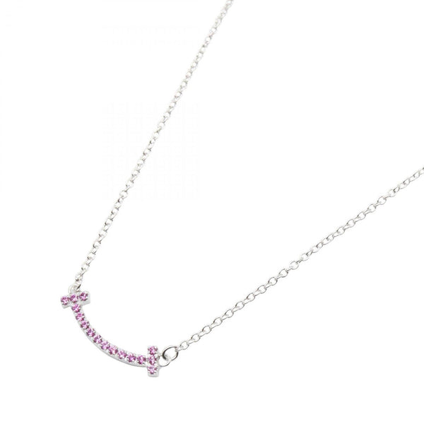 Tiffany & Co. T Smile Mini Sapphire Necklace, 18K White Gold with Sapphire, Silver, for Women