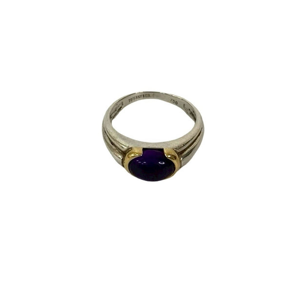 TIFFANY & Co. Tiffany 925 Sterling Silver and 18K Gold Amethyst Stone Ring, Size 9, Women\'s, 97459