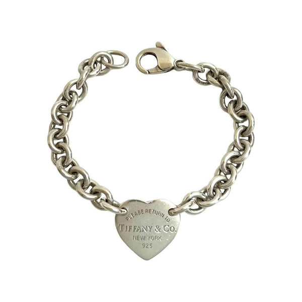 TIFFANY & Co. Tiffany Return to Heart Logo Plate Silver 925 Chain Bracelet Bangle 14473