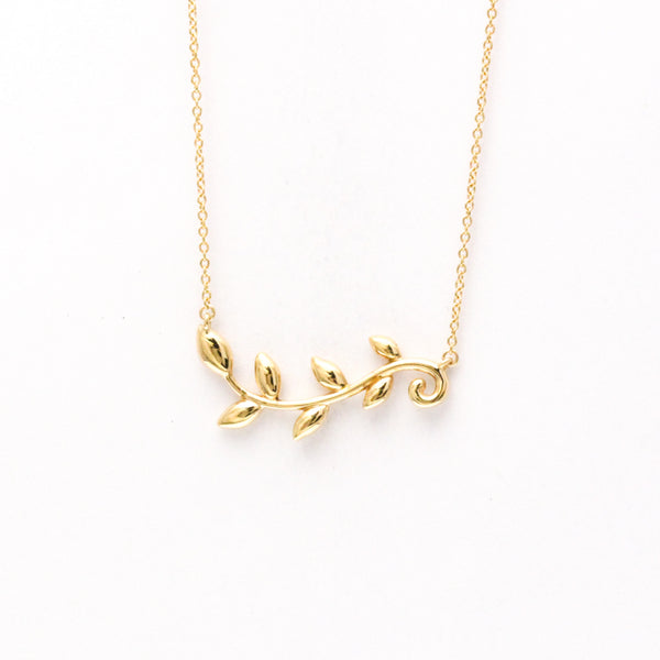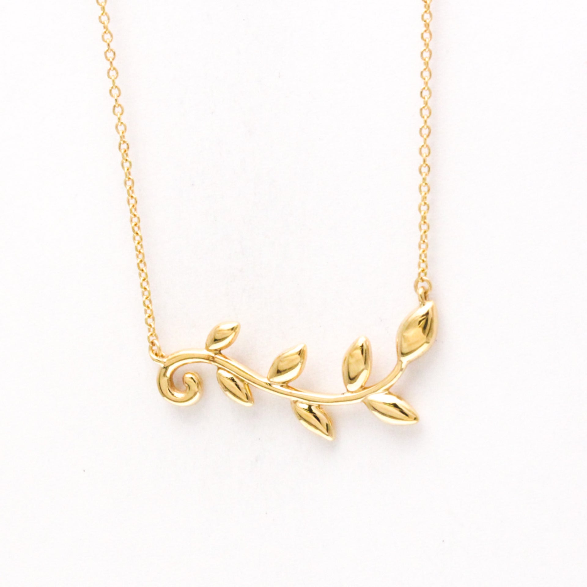 Tiffany Olive Leaf Vine Necklace Pink Gold (18K) No Stone Men,Women Fashion Pendant Necklace (Pink Gold)